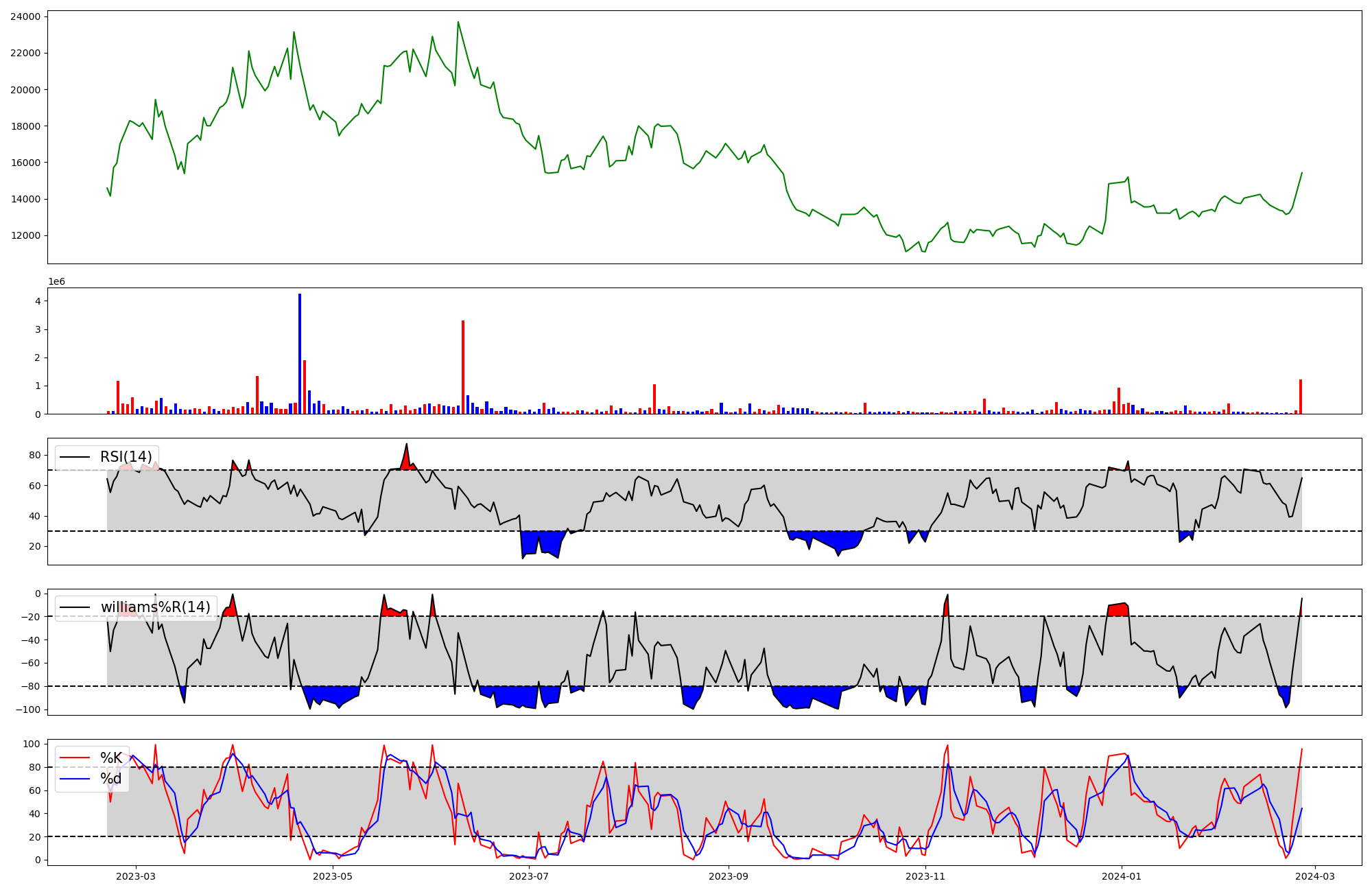 | RSI | Williams %R | stochastic(%K) | |