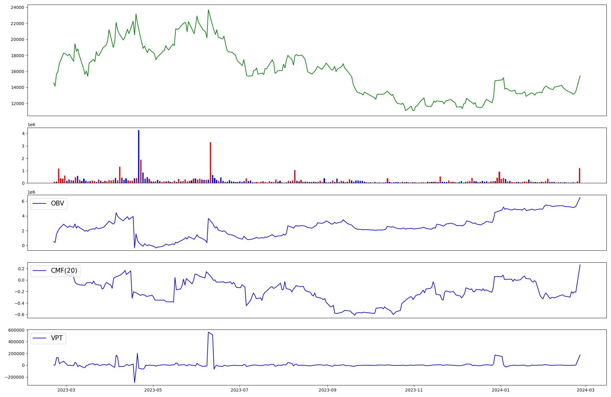 | OBV | CMF | VPT | |