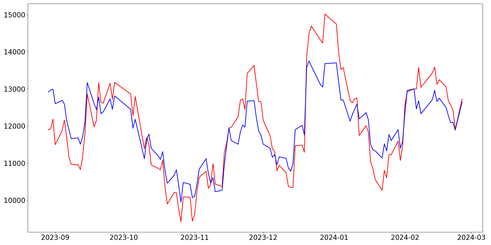 [ - : 실제값(종가) / - : 예측값(종가) ]