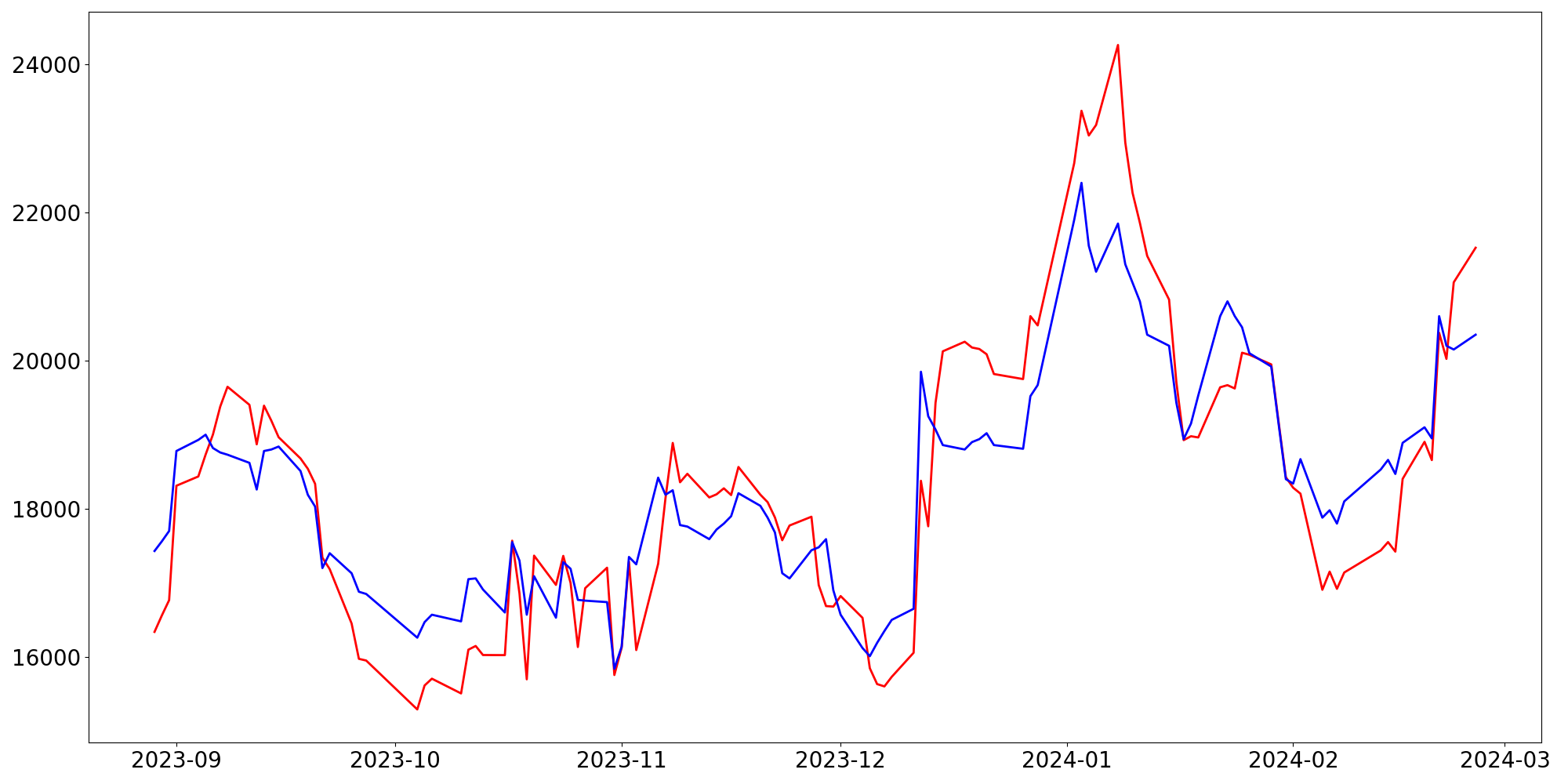 [ - : 실제값(종가) / - : 예측값(종가) ]