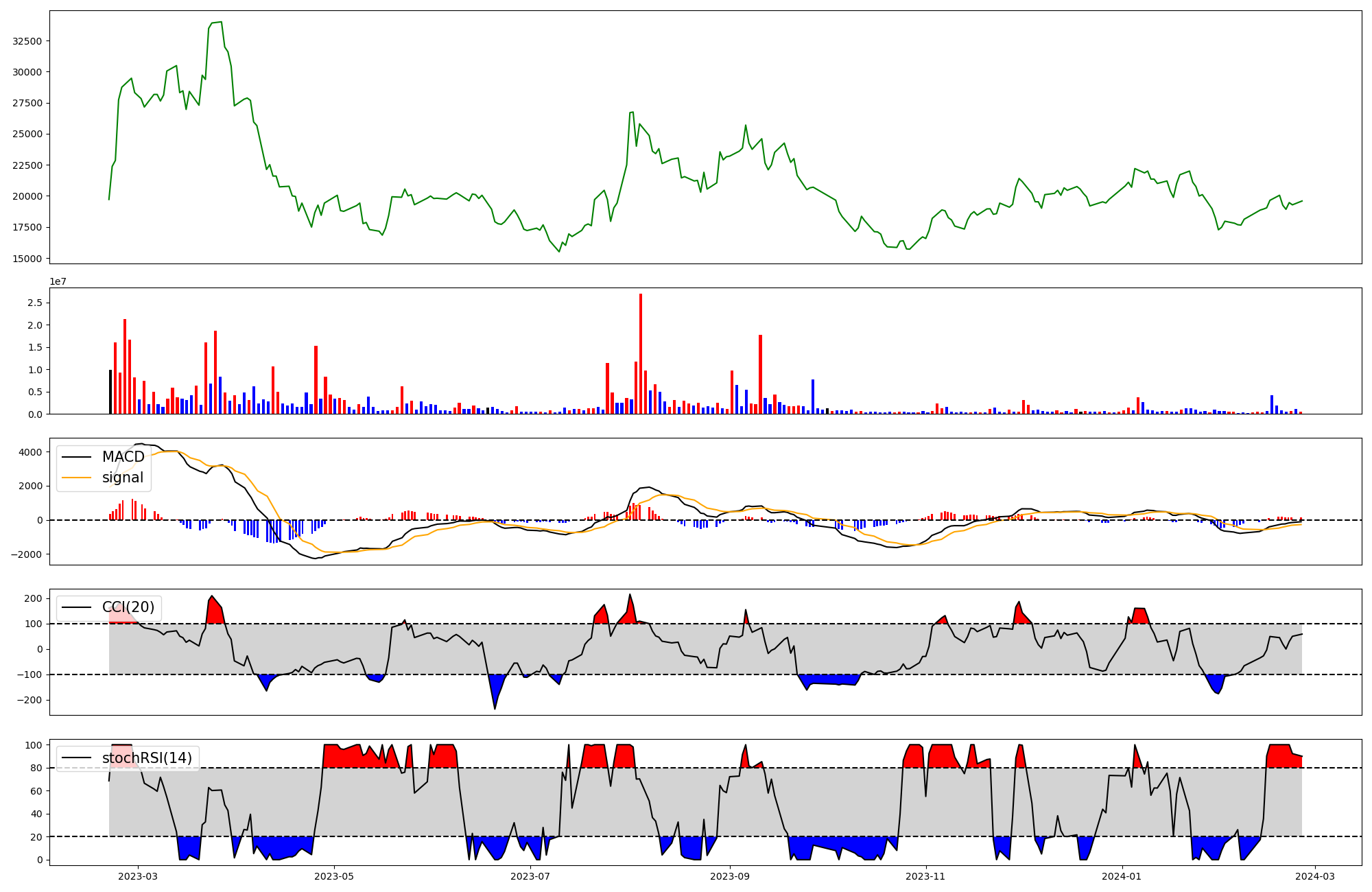□ 중기 : 현재 종가가 중기(60일) 이동평균값(19,945원)을 하회 하여 중기적 추세 하락 중