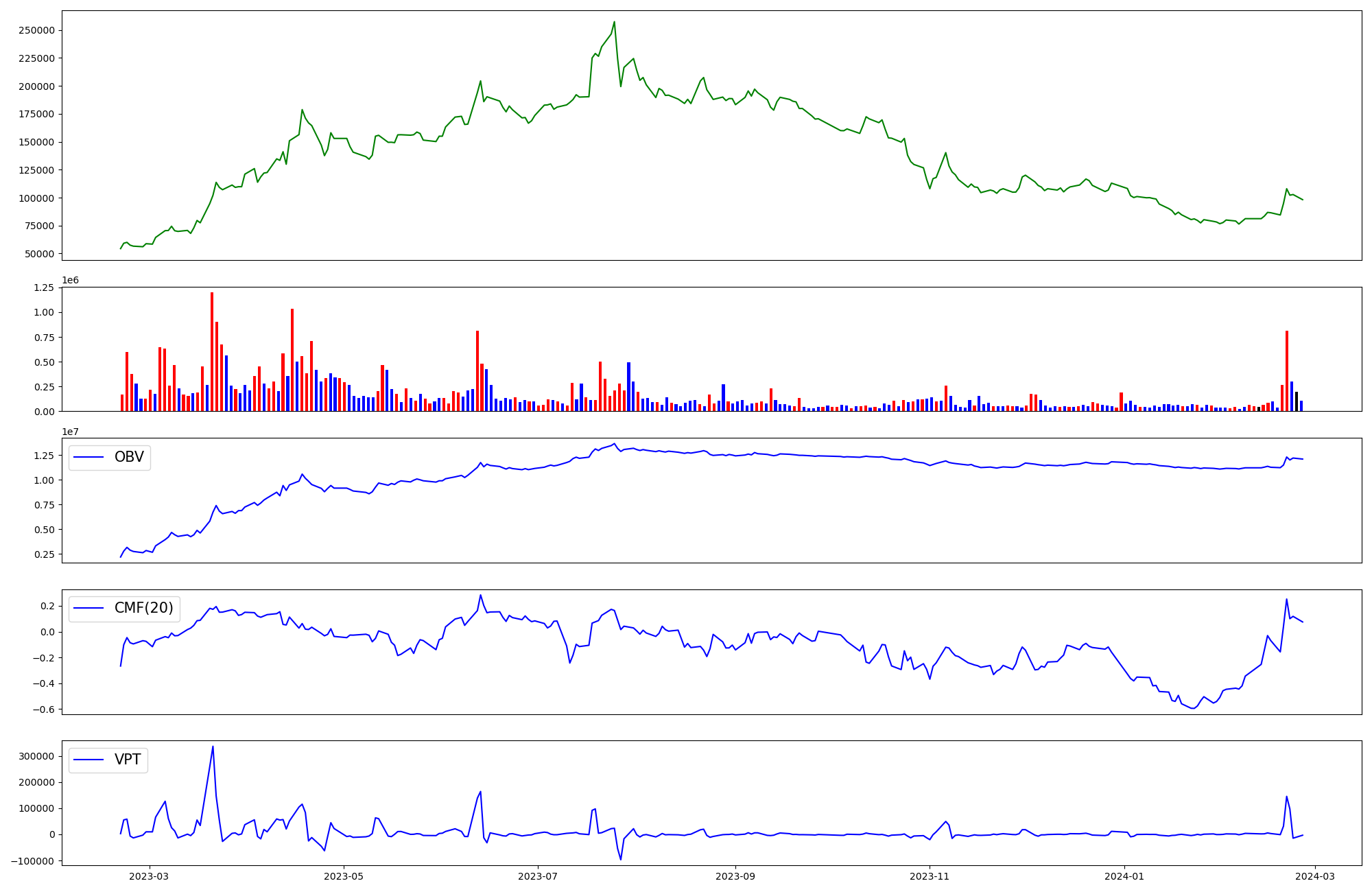 | OBV | CMF | VPT | |