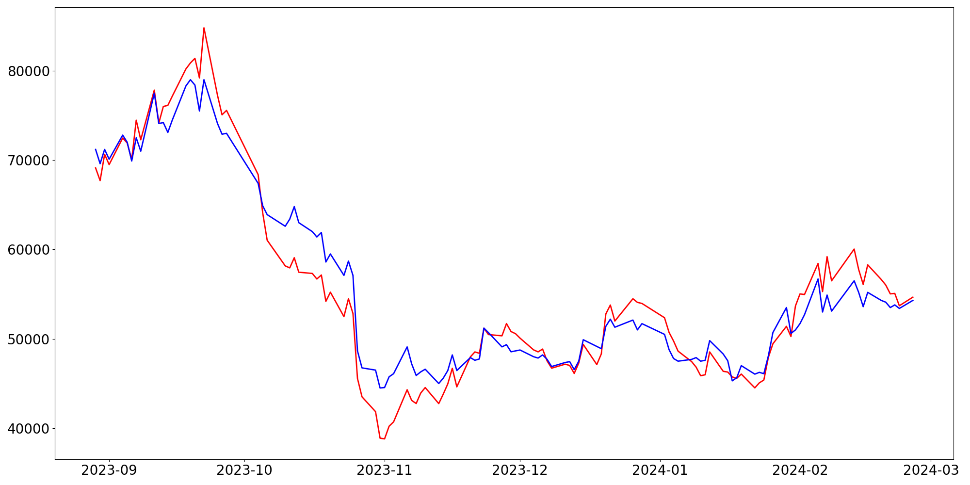 [ - : 실제값(종가) / - : 예측값(종가) ]