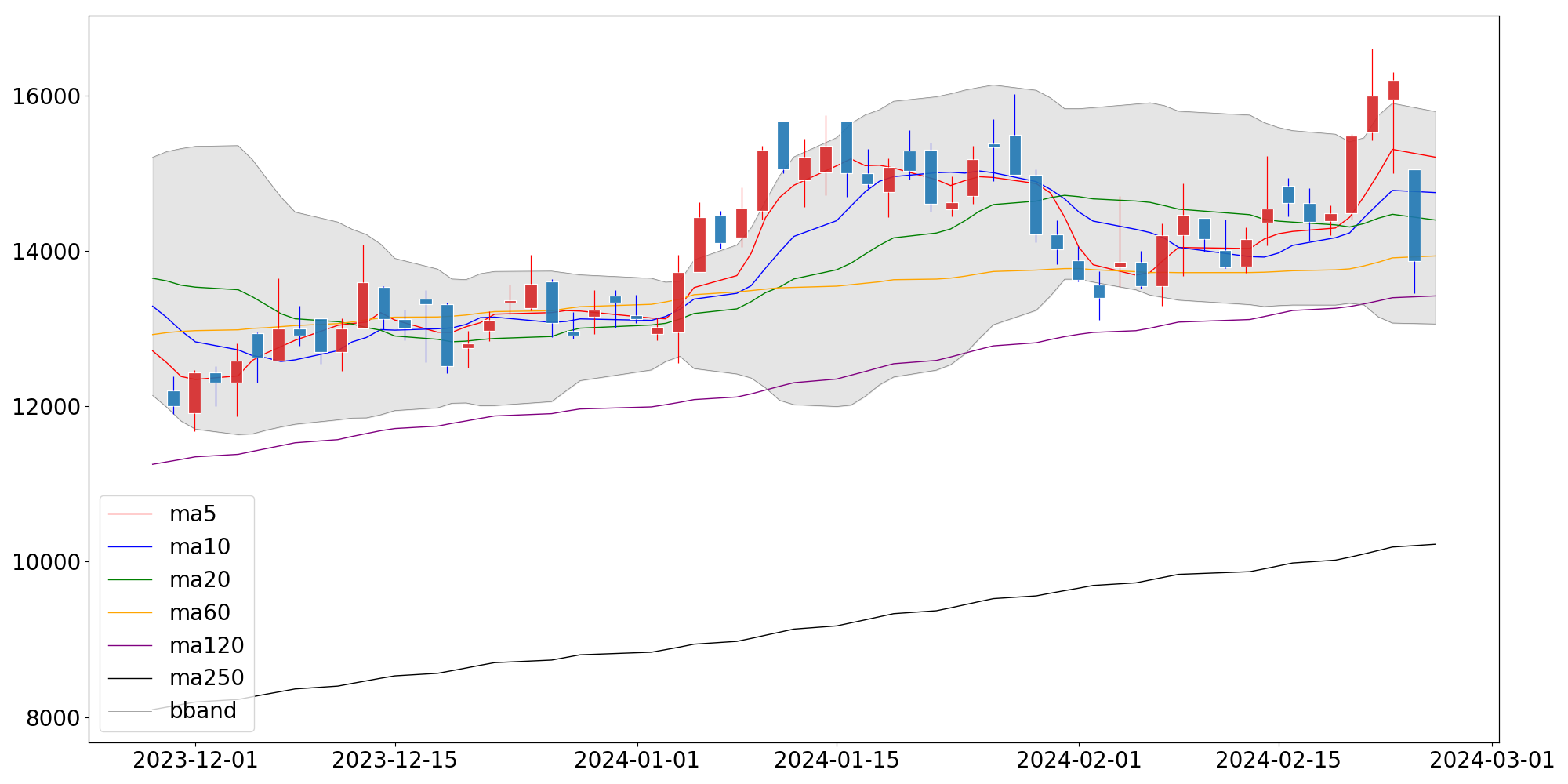 □ 오늘의 종가 : 13,870 (-2,330, -14.38%)