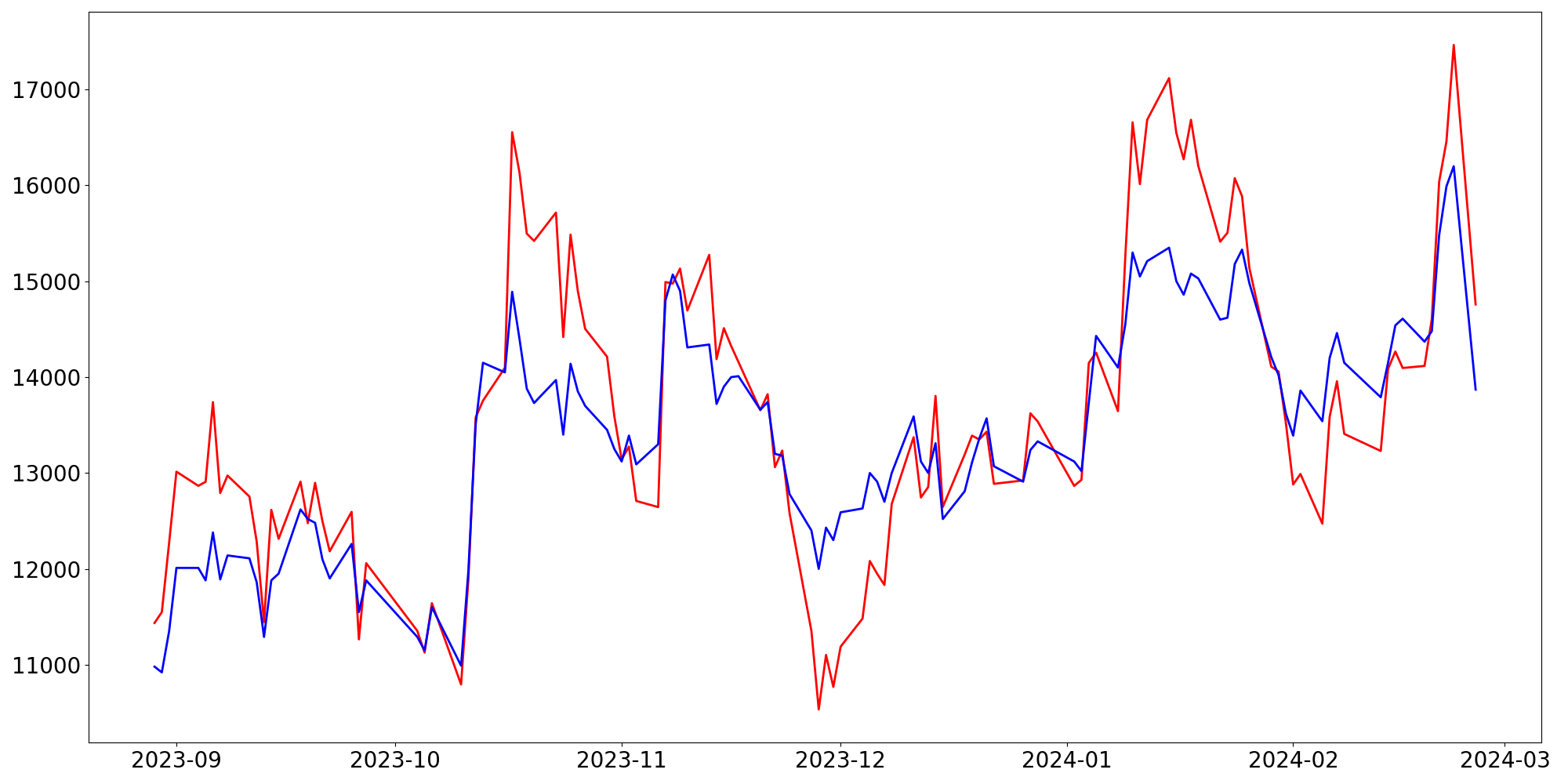 [ - : 실제값(종가) / - : 예측값(종가) ]