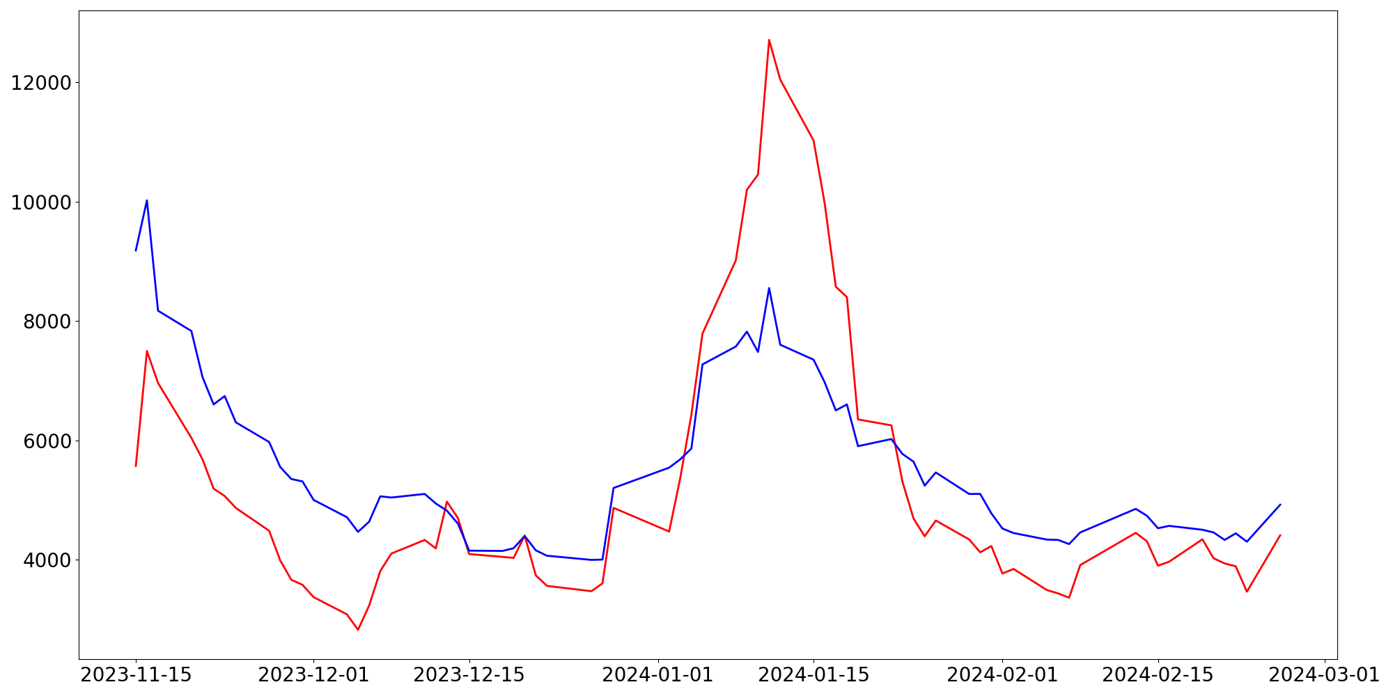[ - : 실제값(종가) / - : 예측값(종가) ]