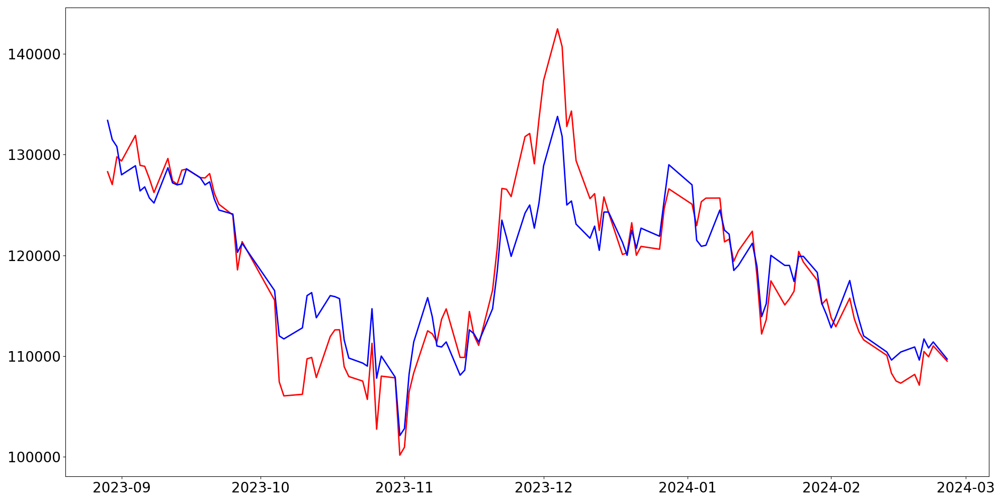 [ - : 실제값(종가) / - : 예측값(종가) ]