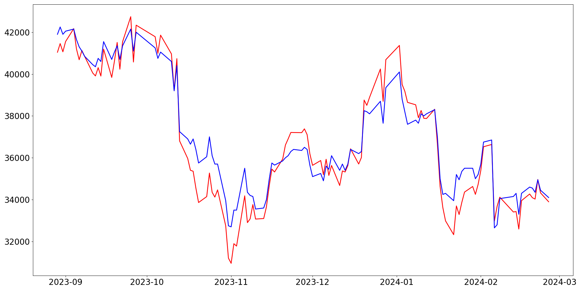 [ - : 실제값(종가) / - : 예측값(종가) ]