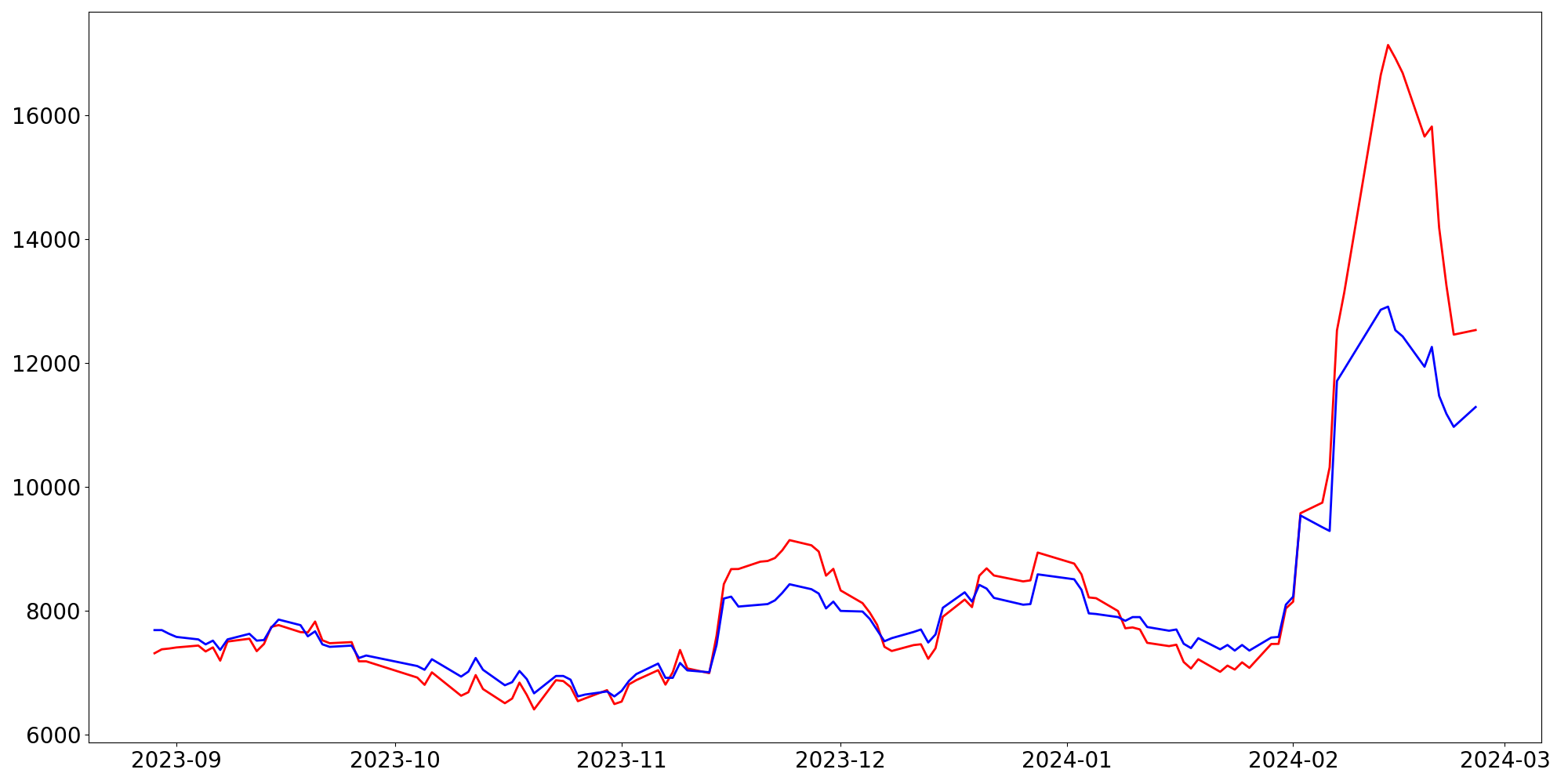[ - : 실제값(종가) / - : 예측값(종가) ]