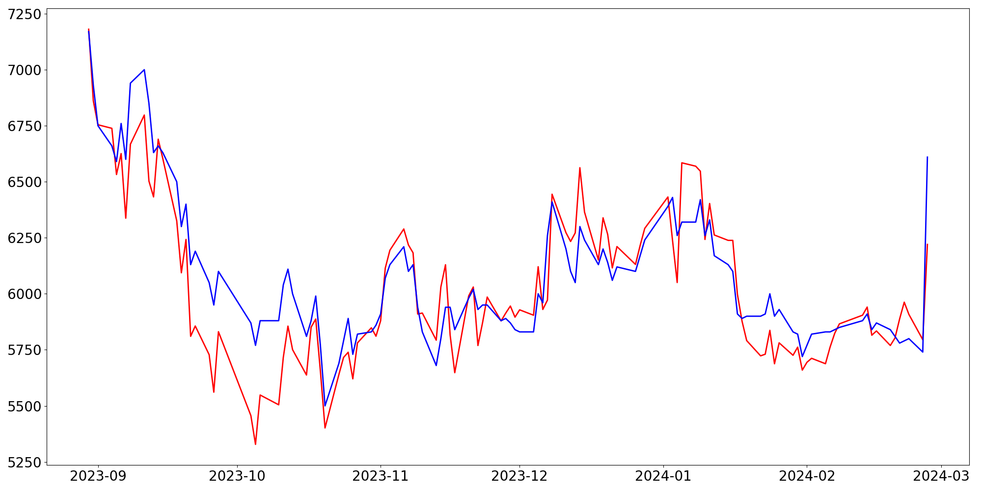 [ - : 실제값(종가) / - : 예측값(종가) ]