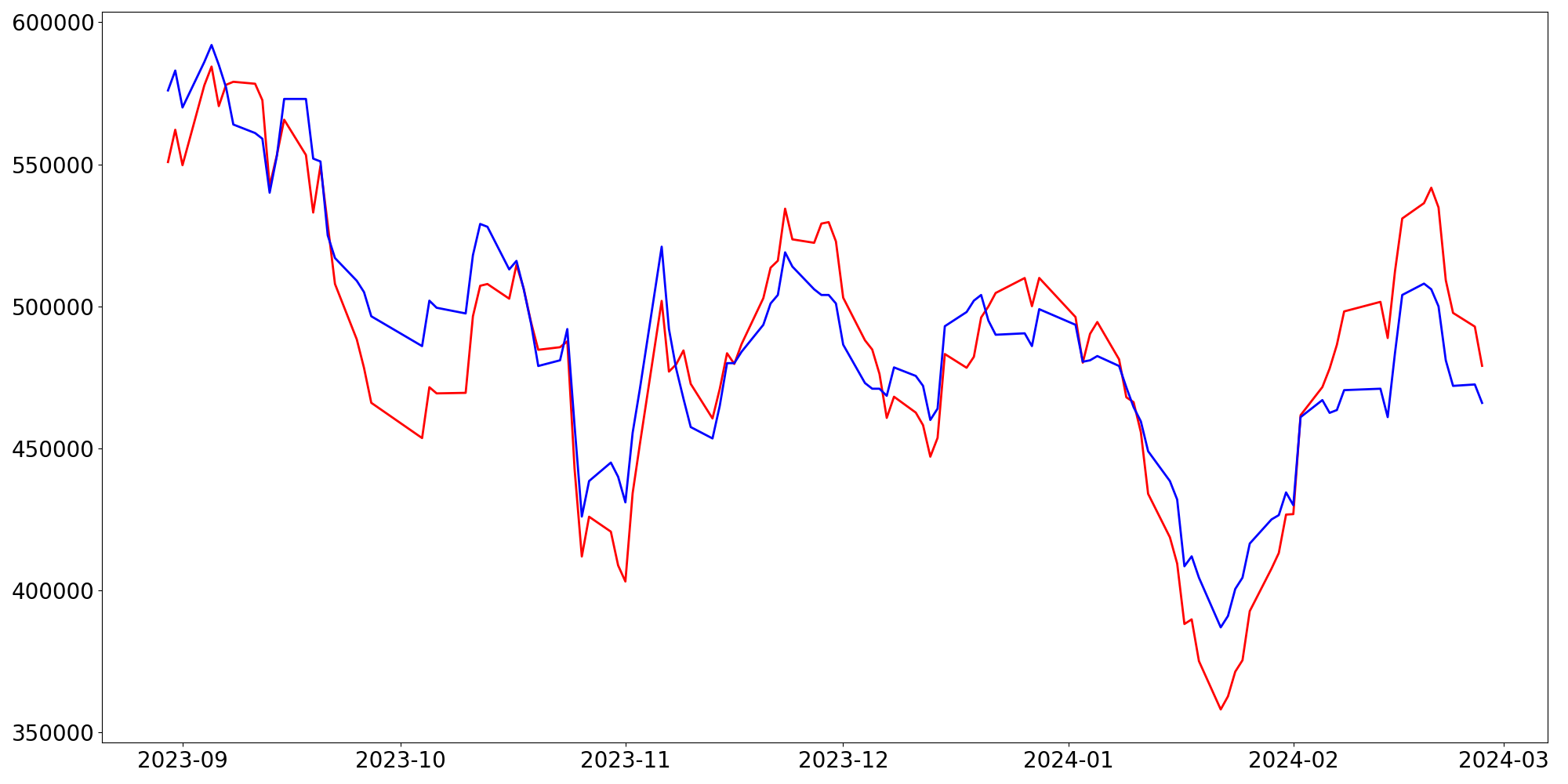 [ - : 실제값(종가) / - : 예측값(종가) ]