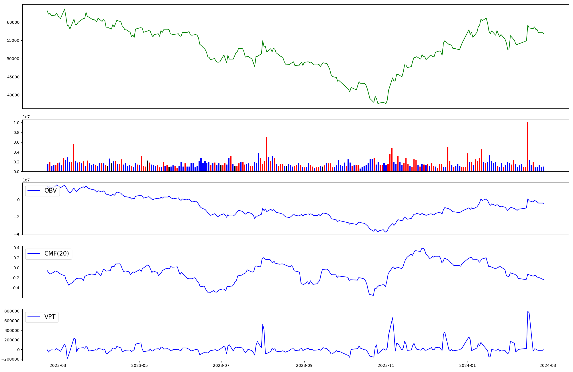 | OBV | CMF | VPT | |