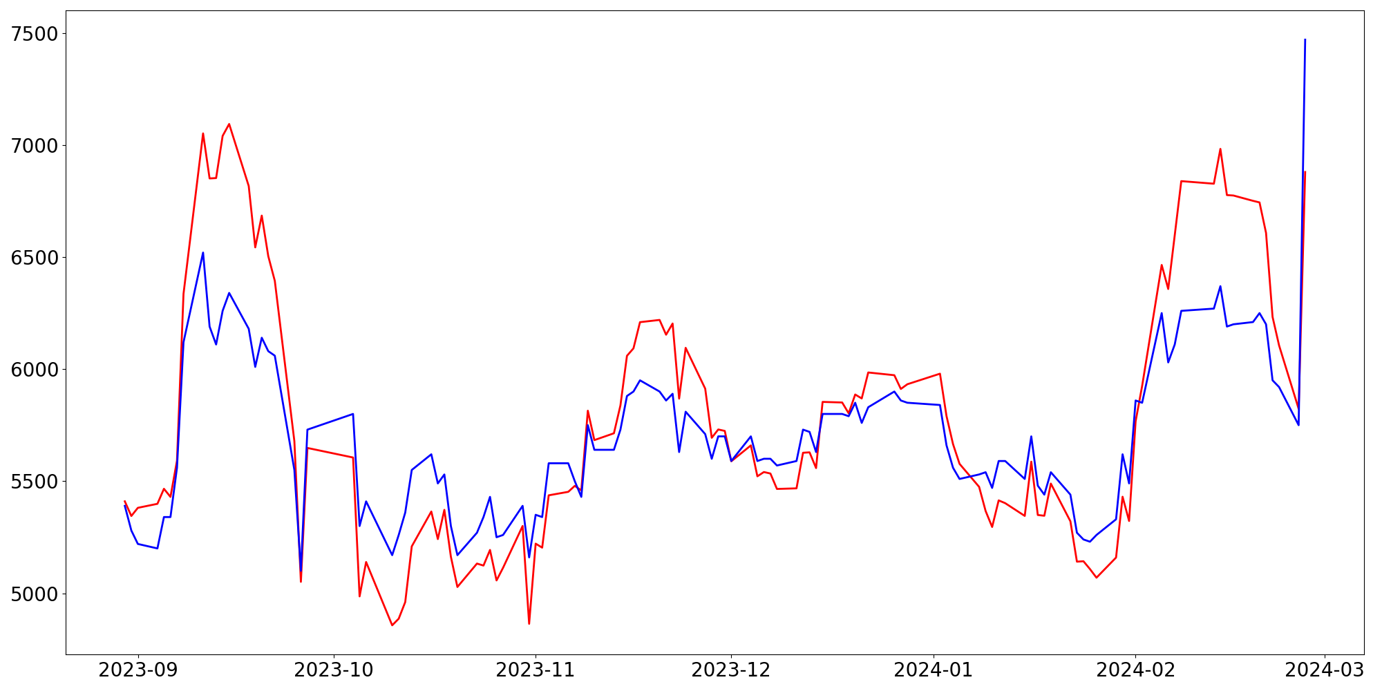 [ - : 실제값(종가) / - : 예측값(종가) ]