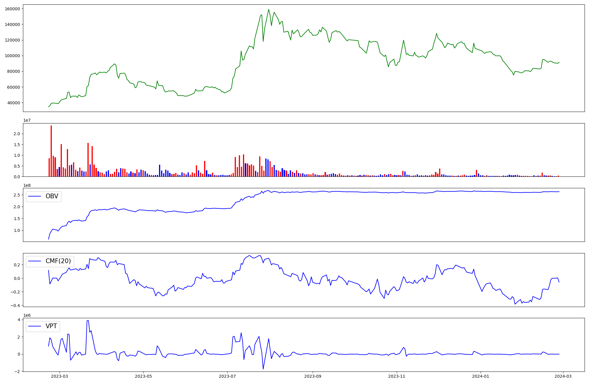 | OBV | CMF | VPT | |