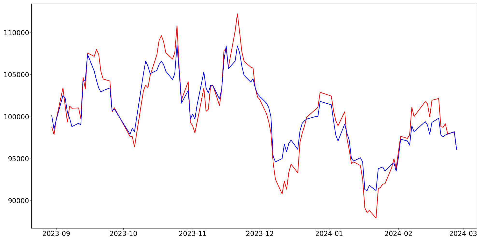 [ - : 실제값(종가) / - : 예측값(종가) ]