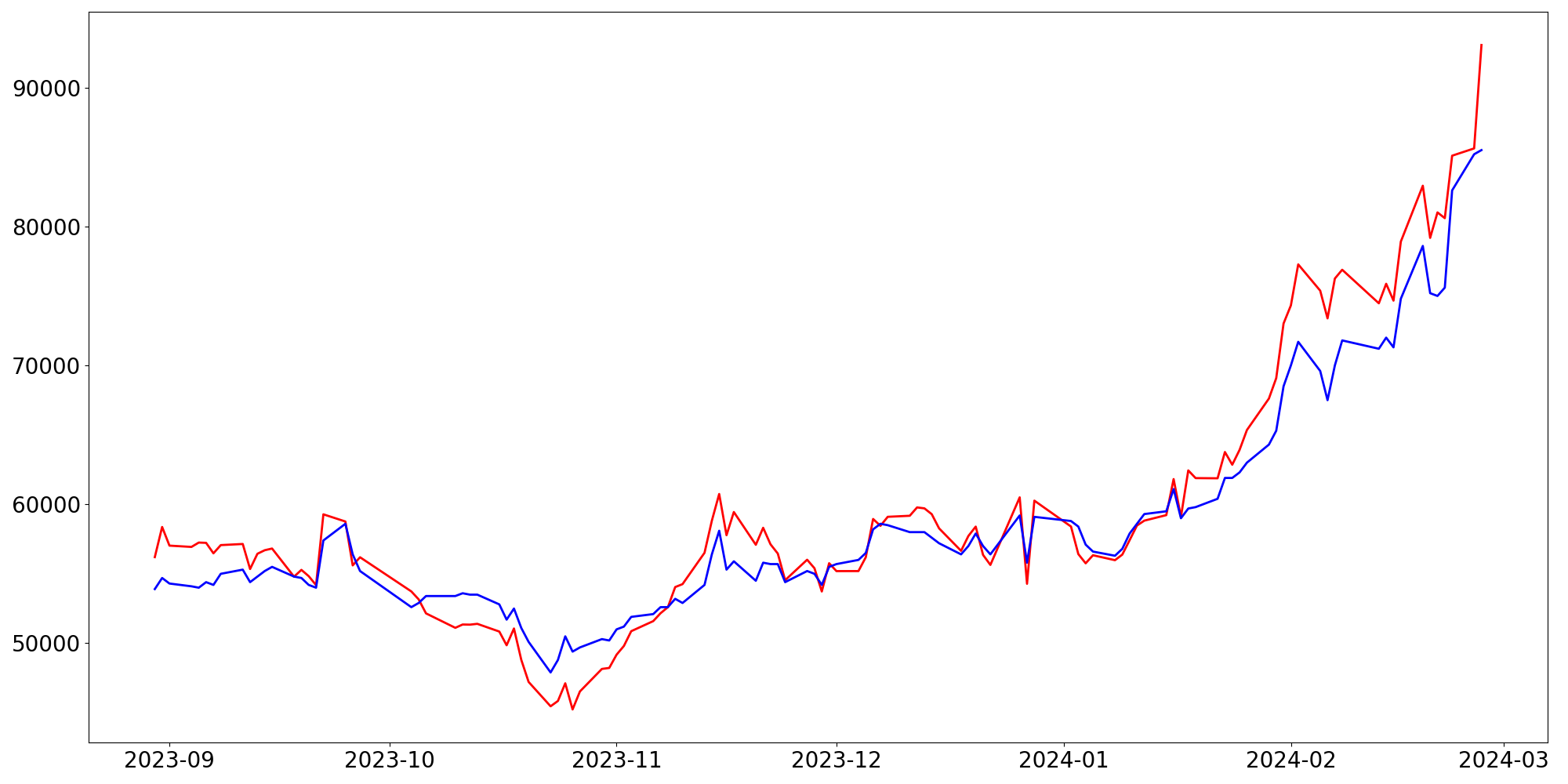 [ - : 실제값(종가) / - : 예측값(종가) ]