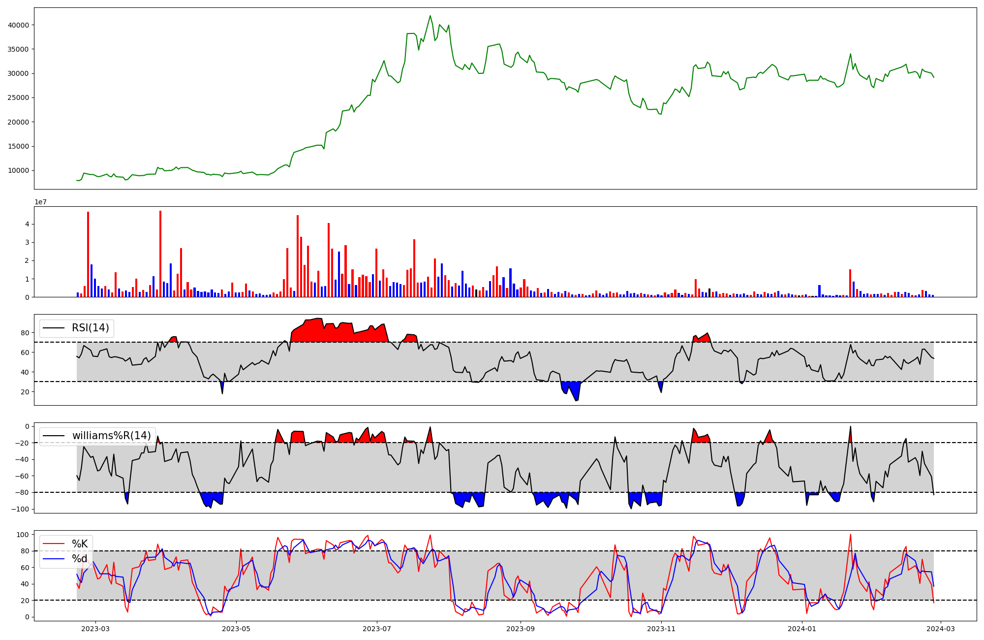 | RSI | Williams %R | stochastic(%K) | |