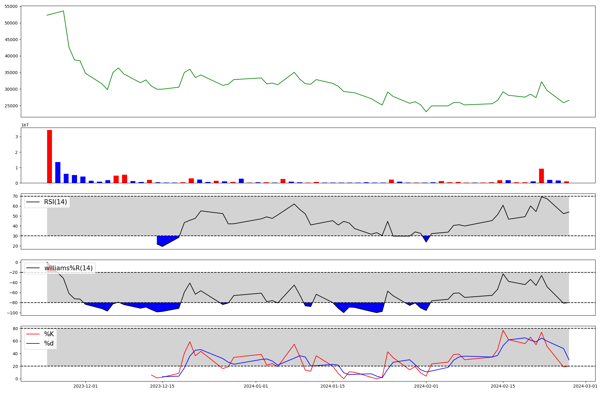 | RSI | Williams %R | stochastic(%K) | |