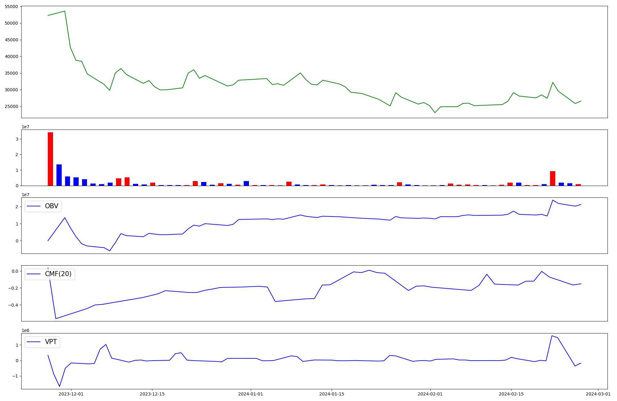 | OBV | CMF | VPT | |