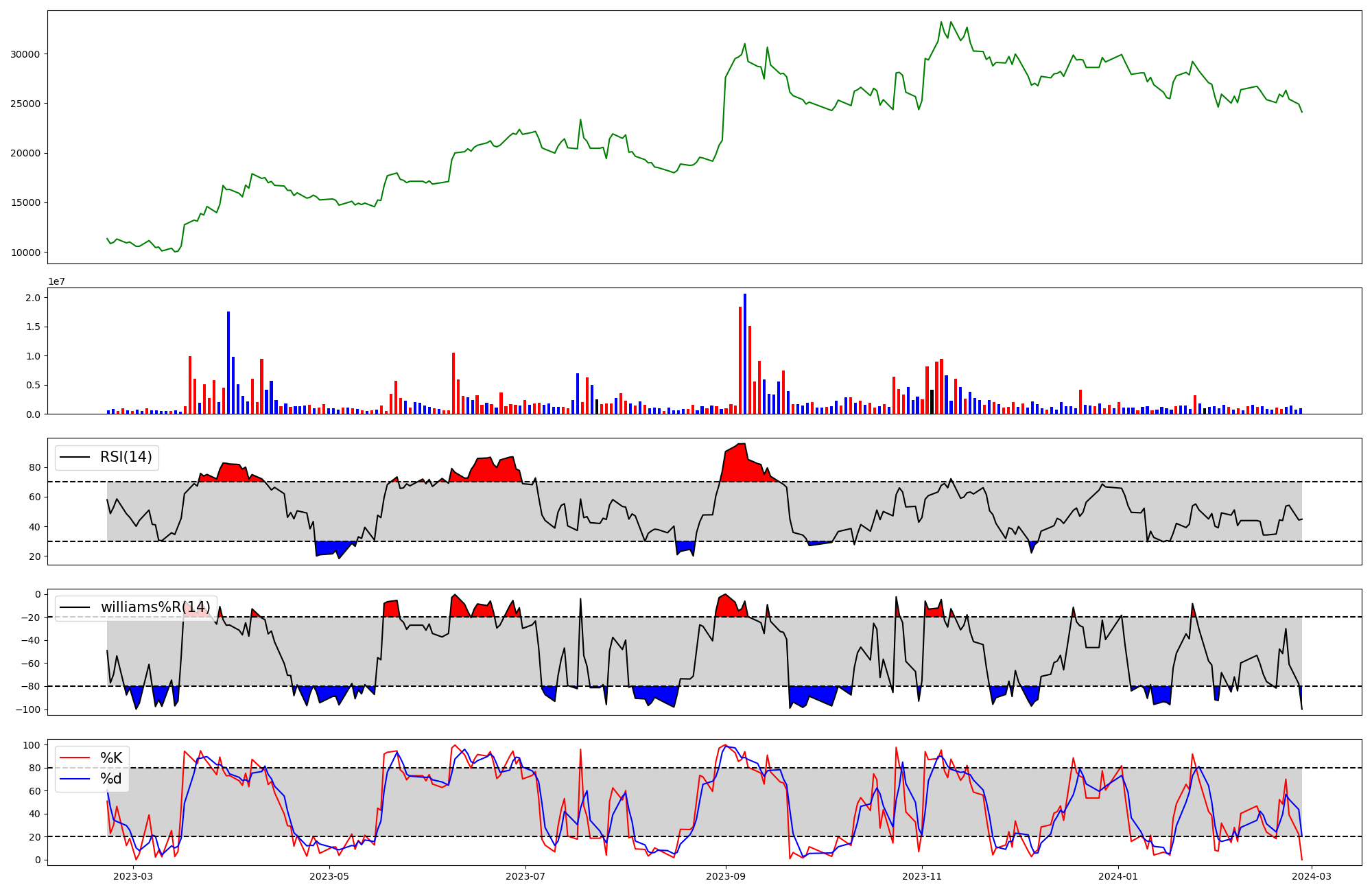 | RSI | Williams %R | stochastic(%K) | |
