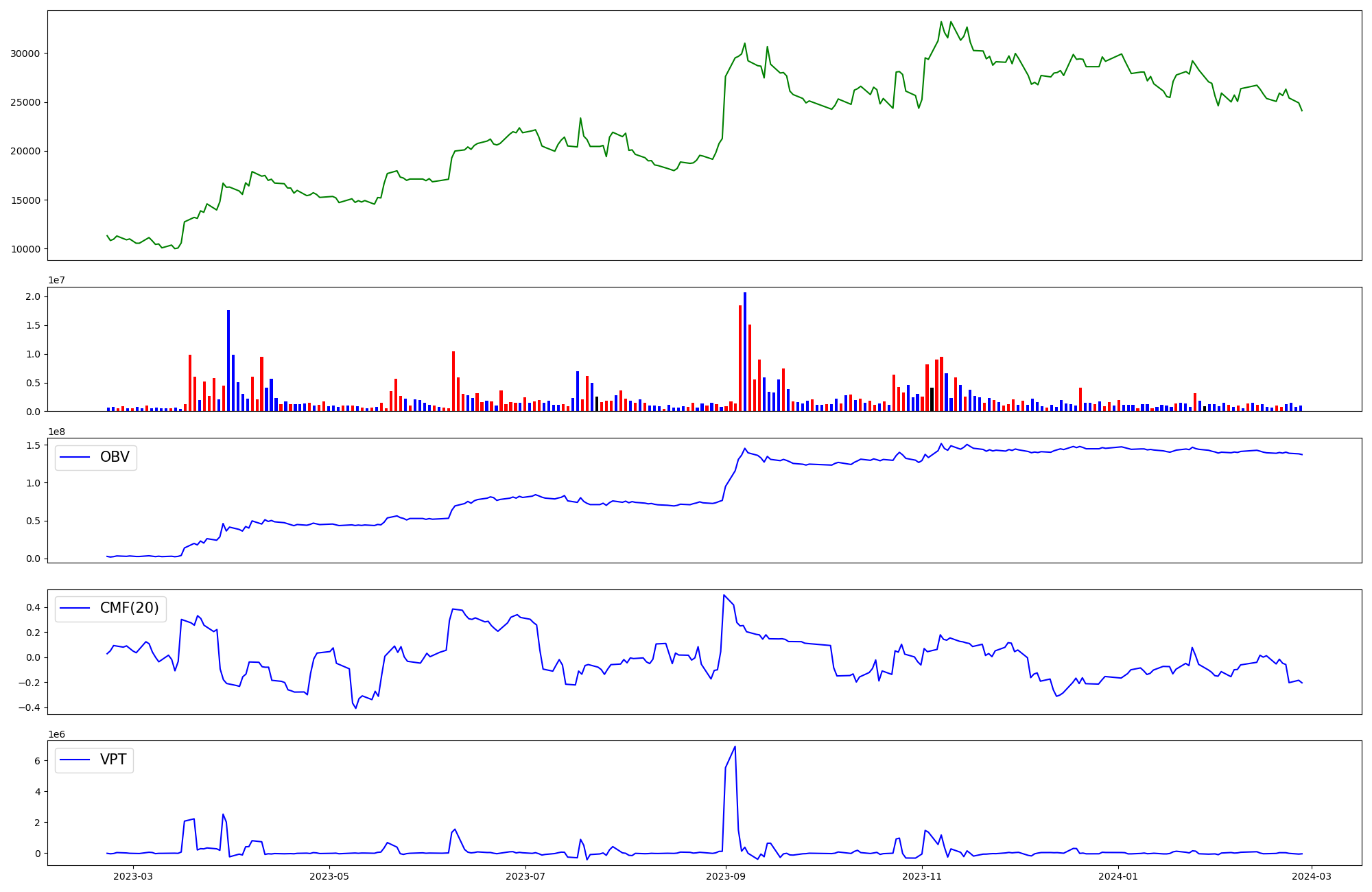 | OBV | CMF | VPT | |