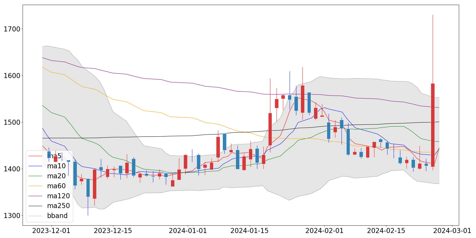 □ 오늘의 종가 : 1,583 (+177, +12.59%)