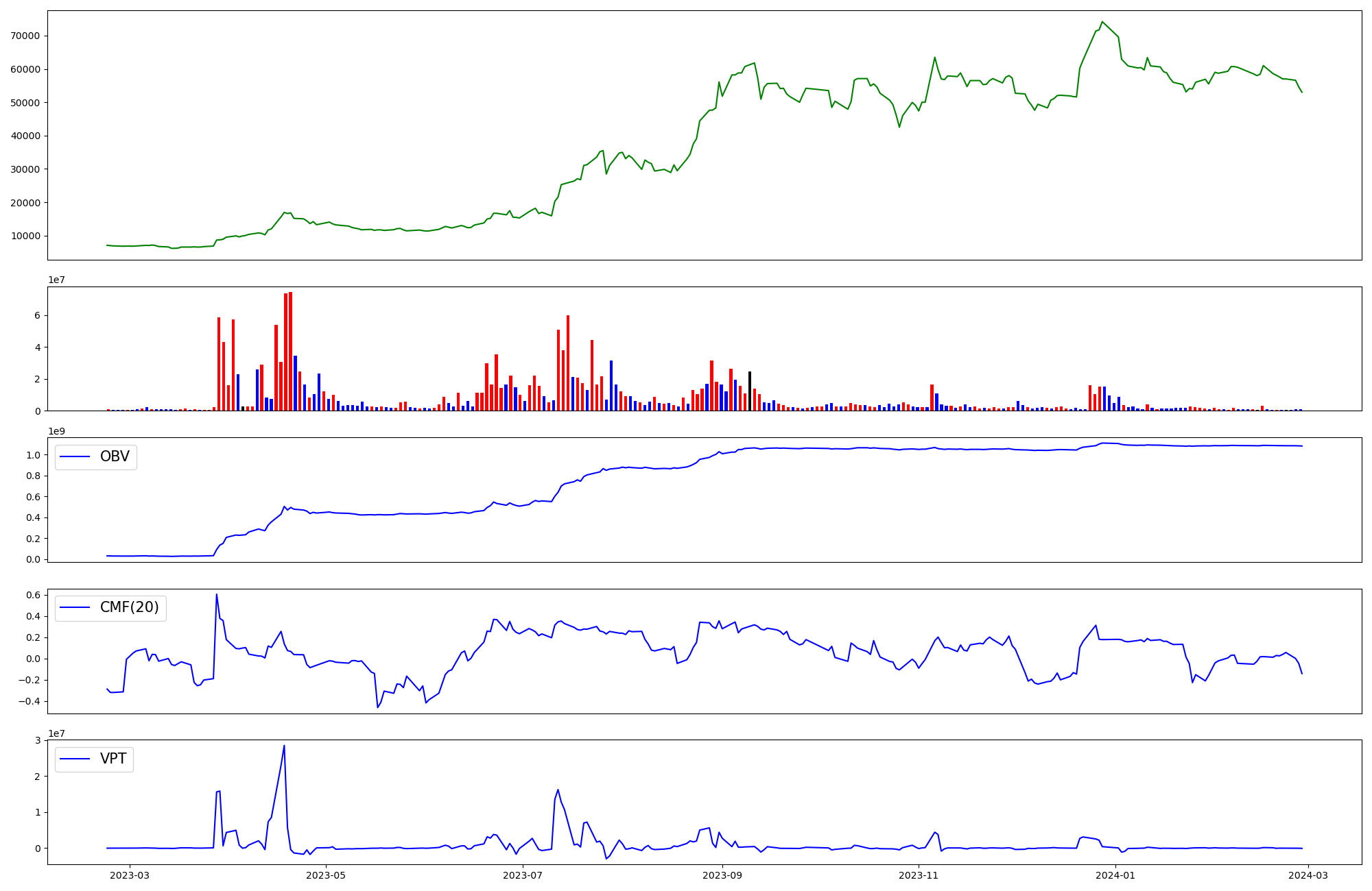 | OBV | CMF | VPT | |