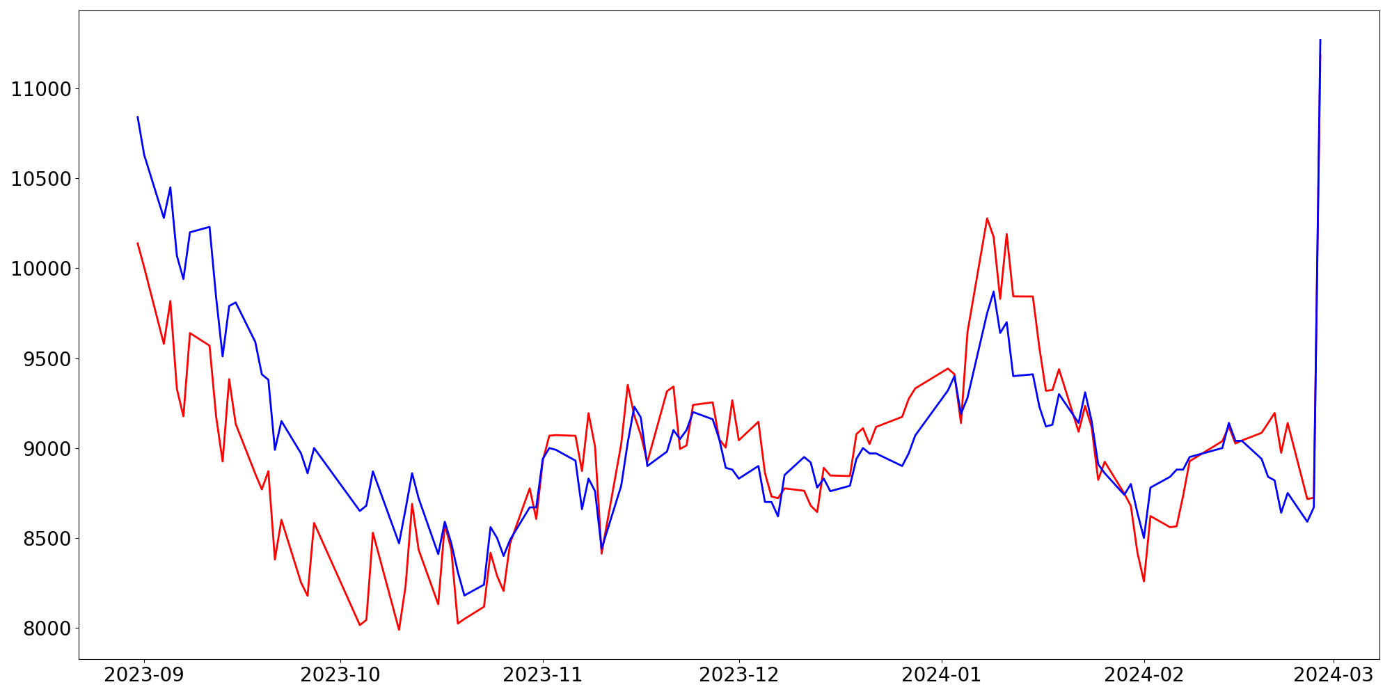 [ - : 실제값(종가) / - : 예측값(종가) ]