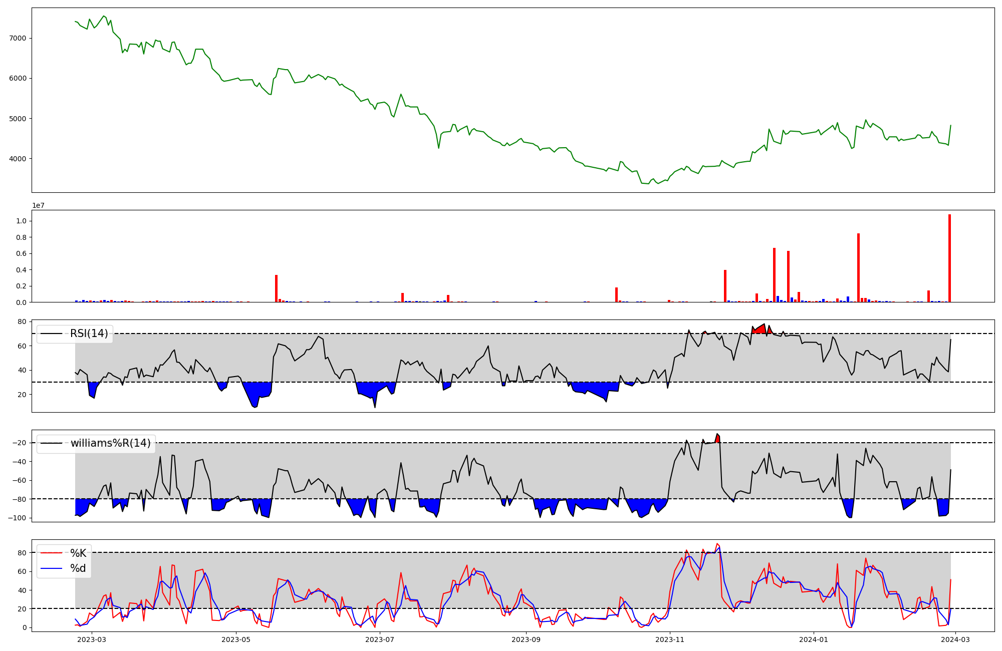 | RSI | Williams %R | stochastic(%K) | |