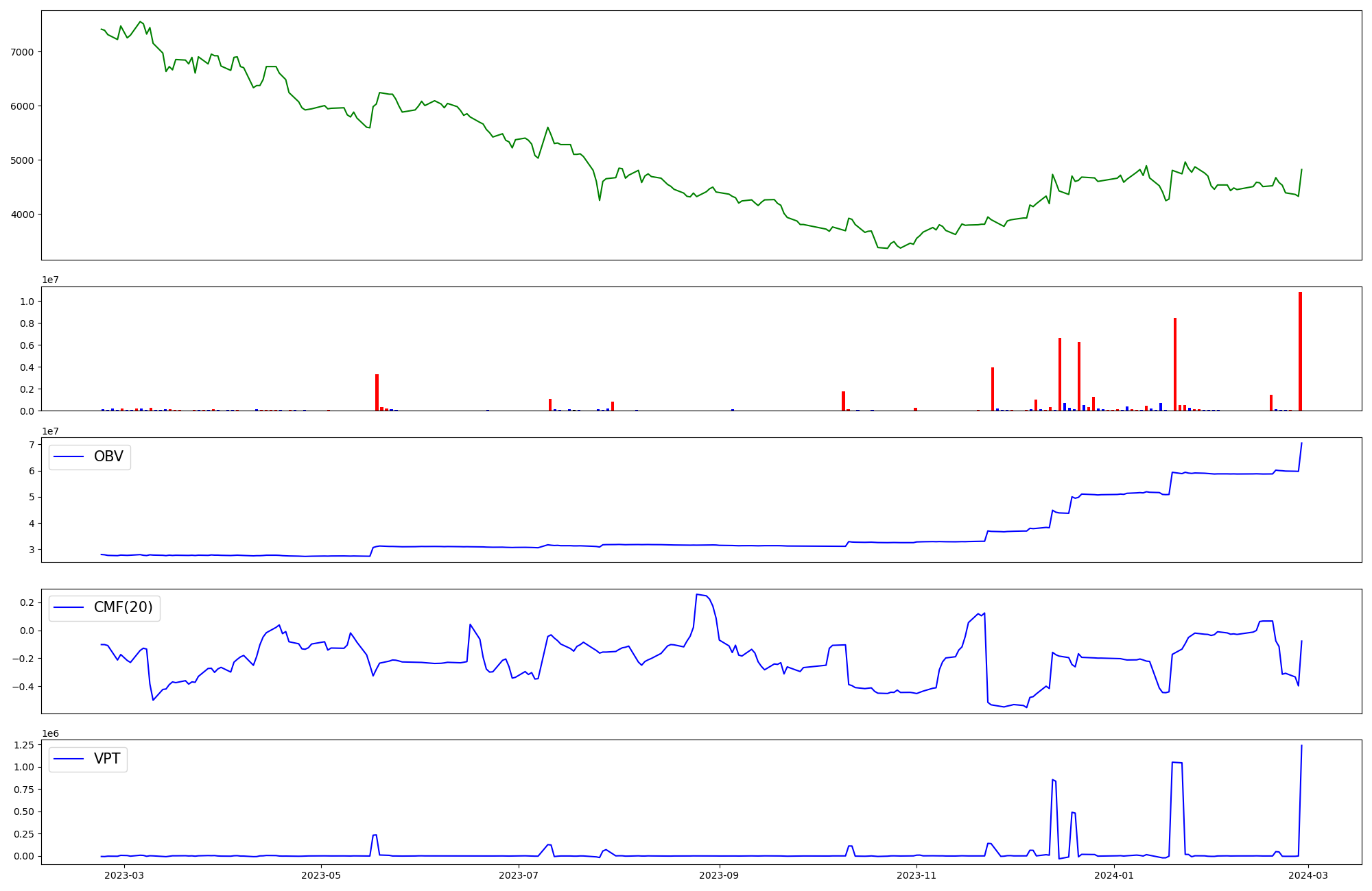 | OBV | CMF | VPT | |