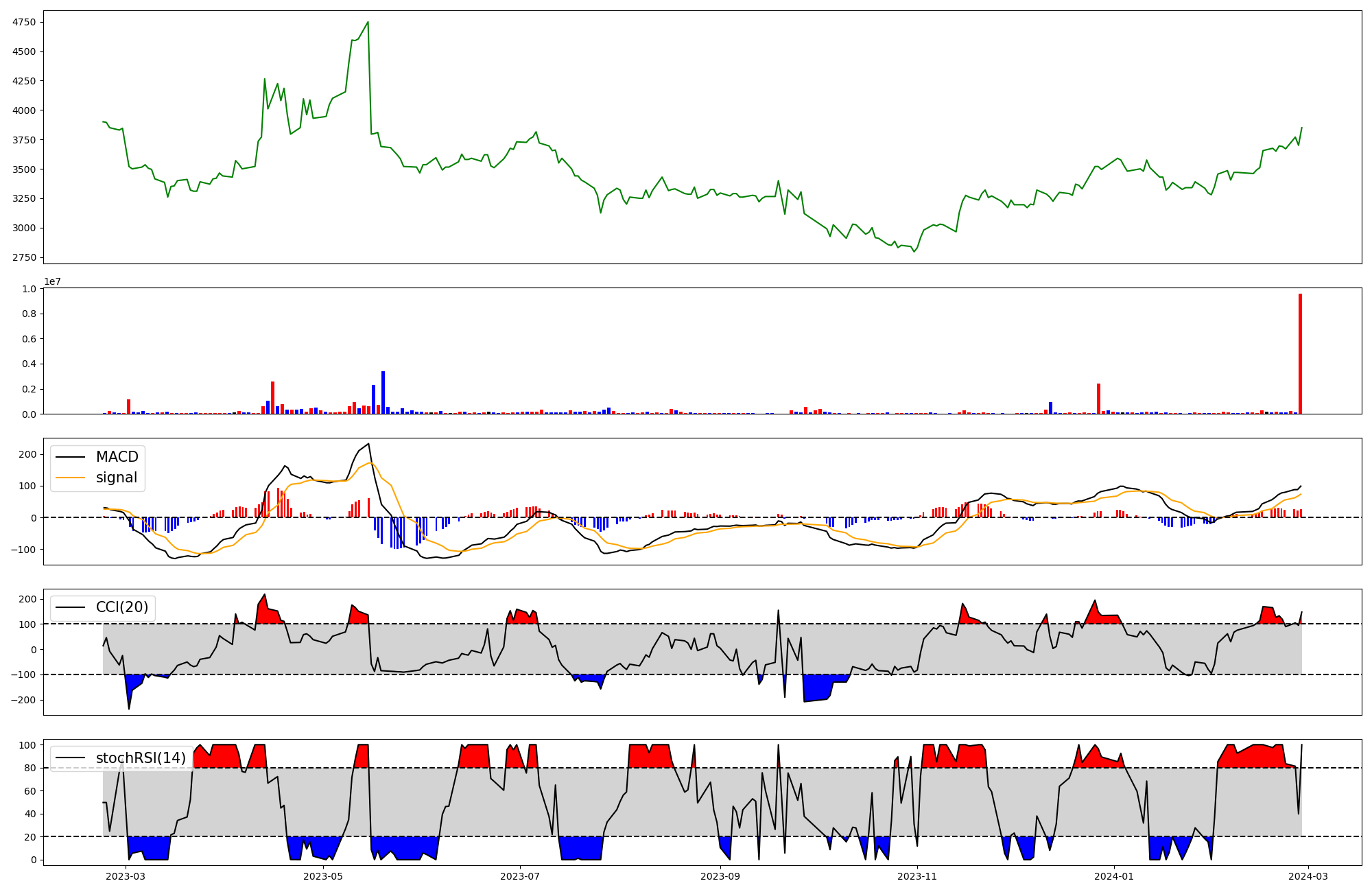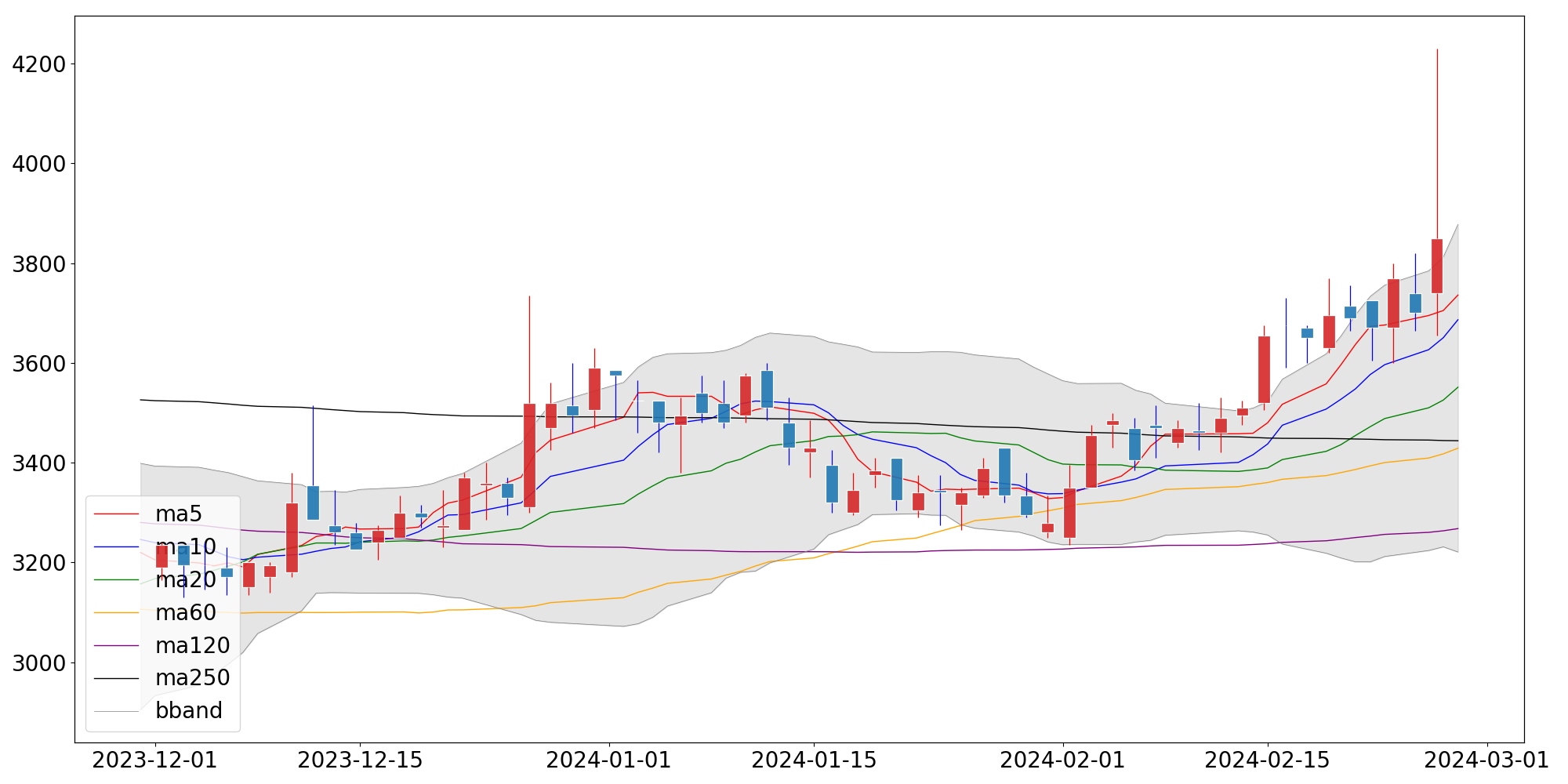 □ 오늘의 종가 : 3,850 (+150, +4.05%)