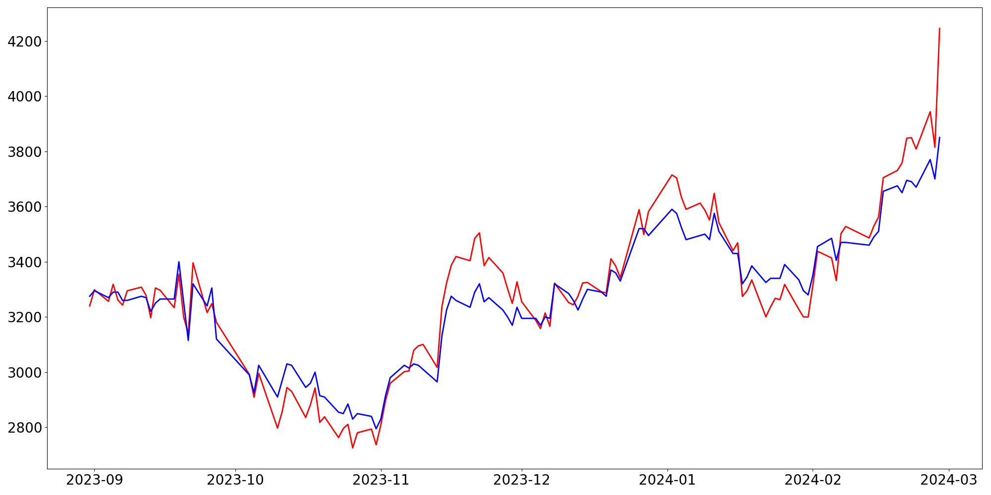[ - : 실제값(종가) / - : 예측값(종가) ]