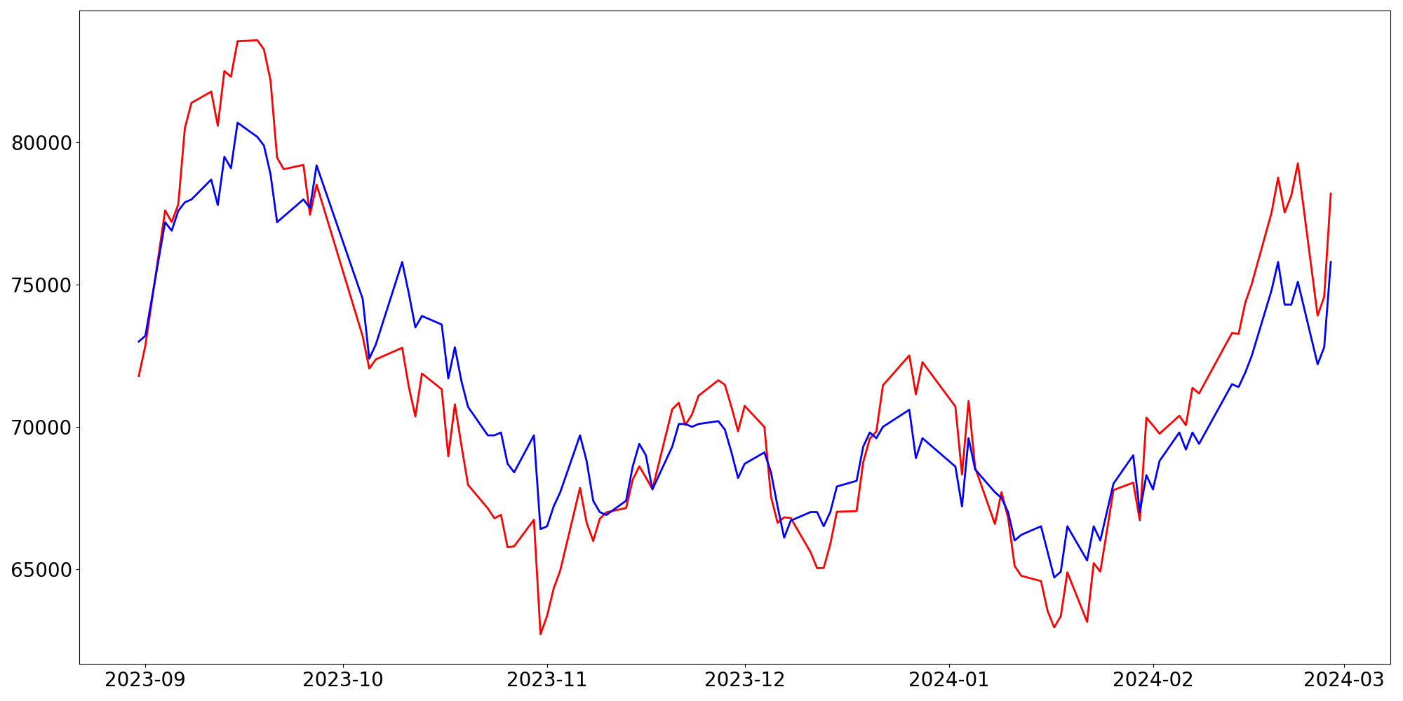 [ - : 실제값(종가) / - : 예측값(종가) ]