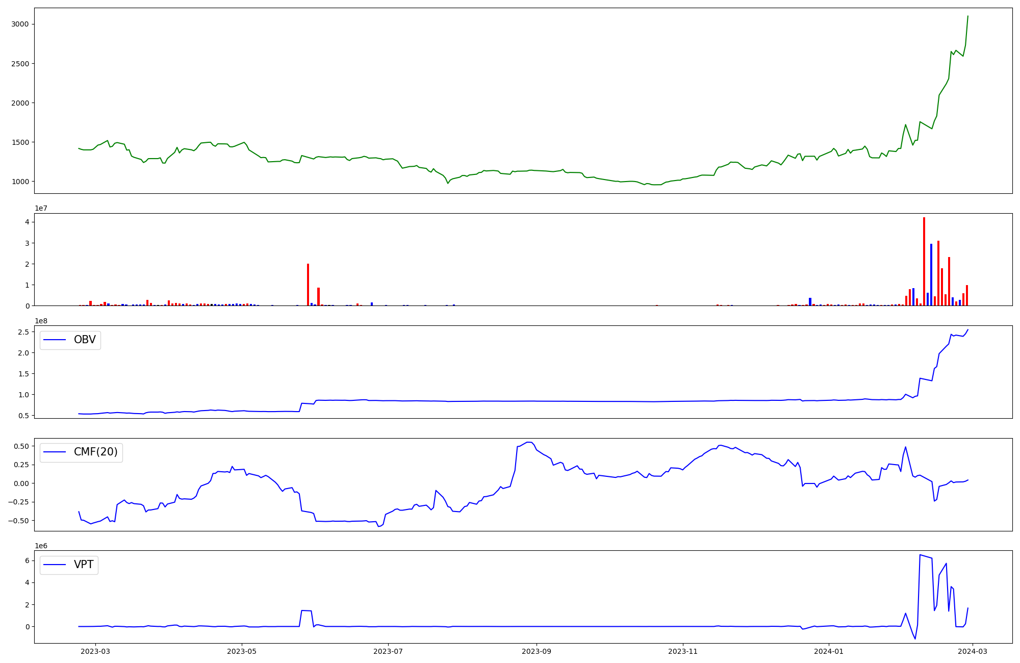 | OBV | CMF | VPT | |