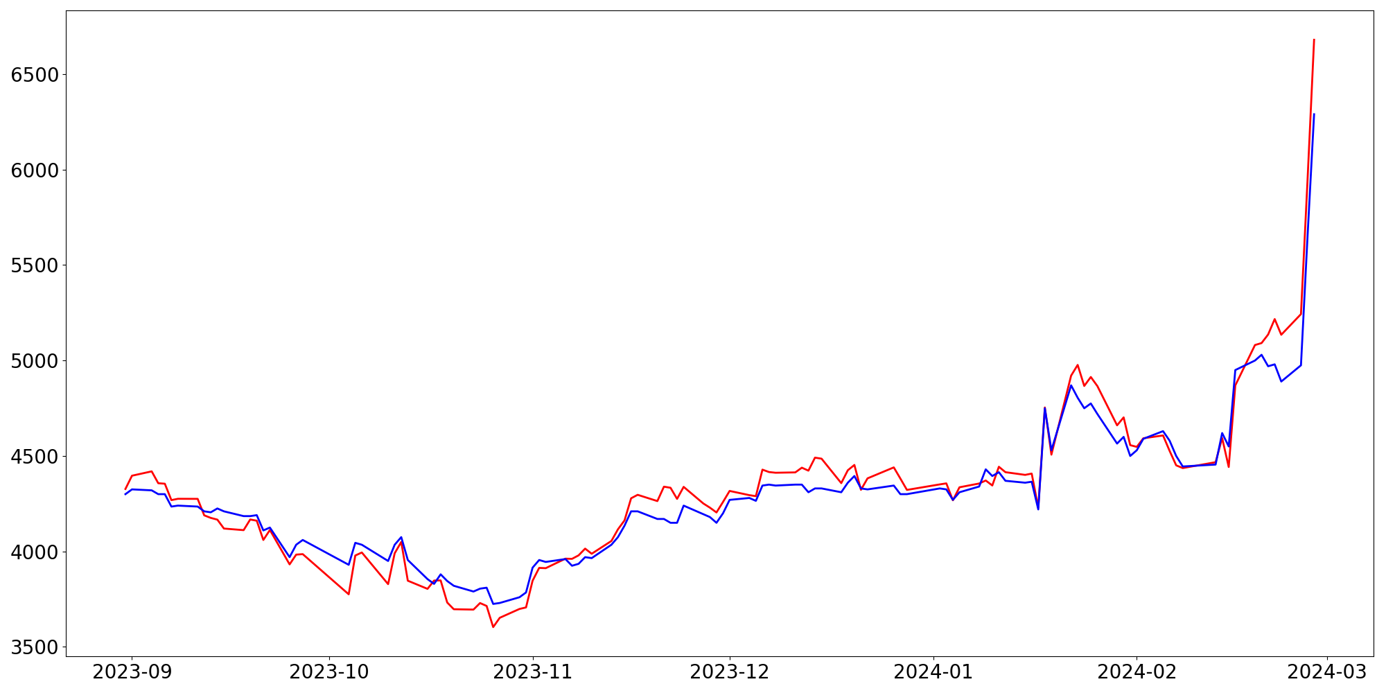 [ - : 실제값(종가) / - : 예측값(종가) ]
