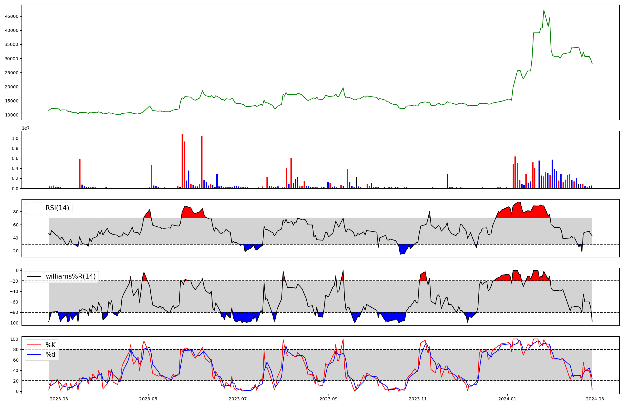 | RSI | Williams %R | stochastic(%K) | |