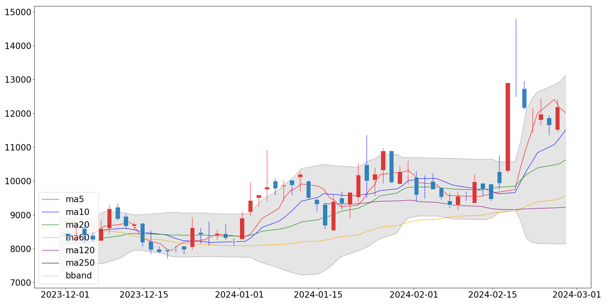 □ 장기 : 현재 종가가 장기(250일) 이동평균값(nan원)을 상회 하여 장기적 추세 상승 중