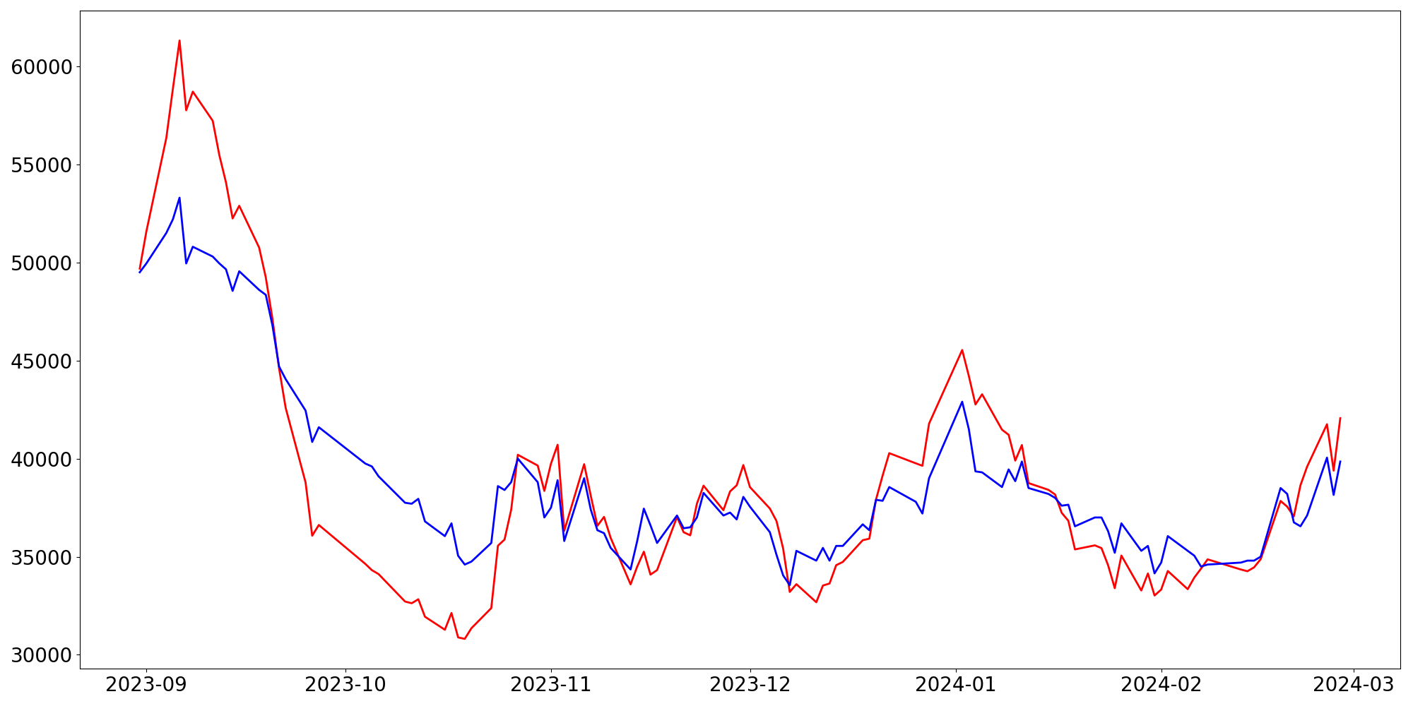 [ - : 실제값(종가) / - : 예측값(종가) ]