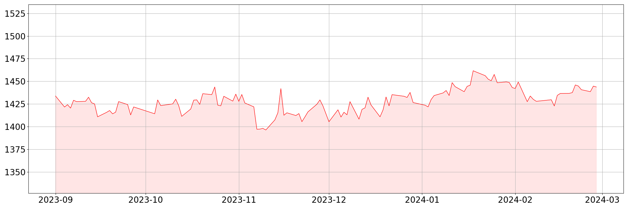 | 현재 | 1,443.73 | -0.97 | -0.07% |