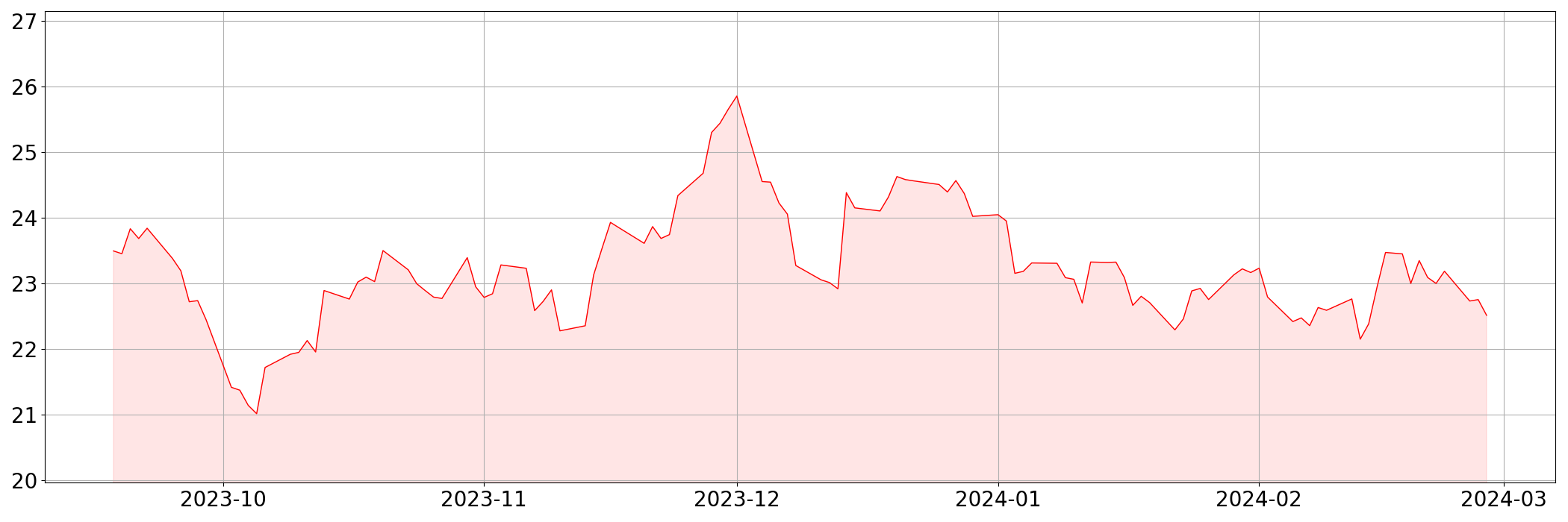 | 현재 | 22.52 | -0.24 | -1.05% |