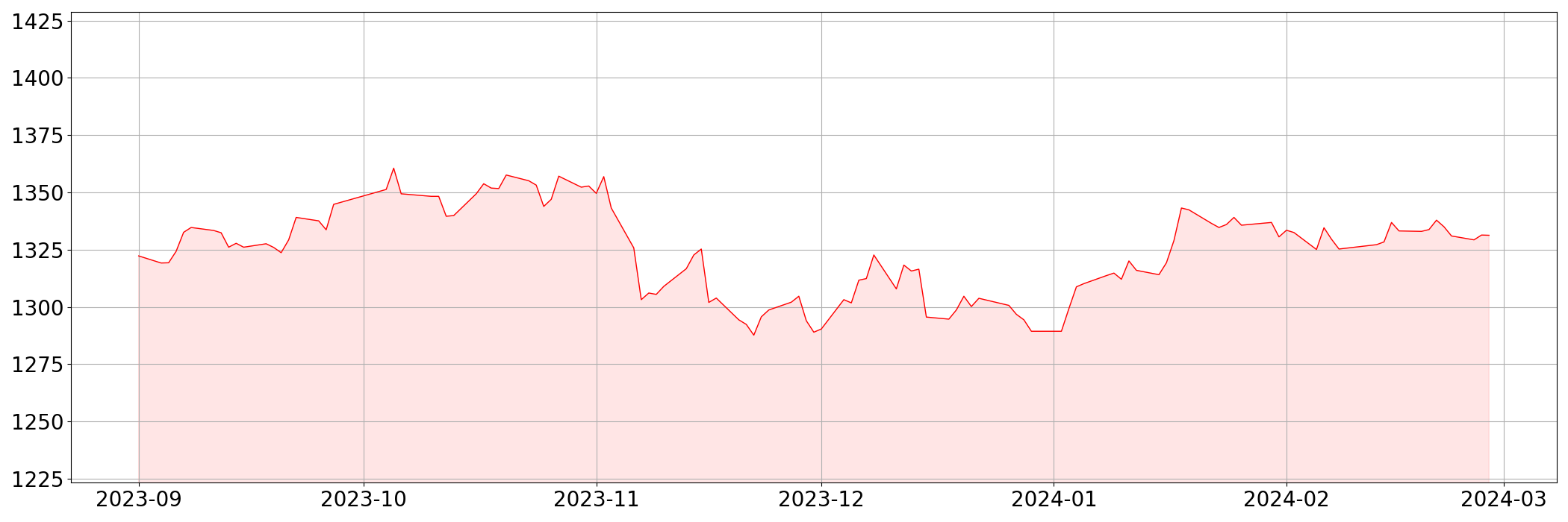 | 현재 | 1,331.30 | -0.10 | -0.01% |