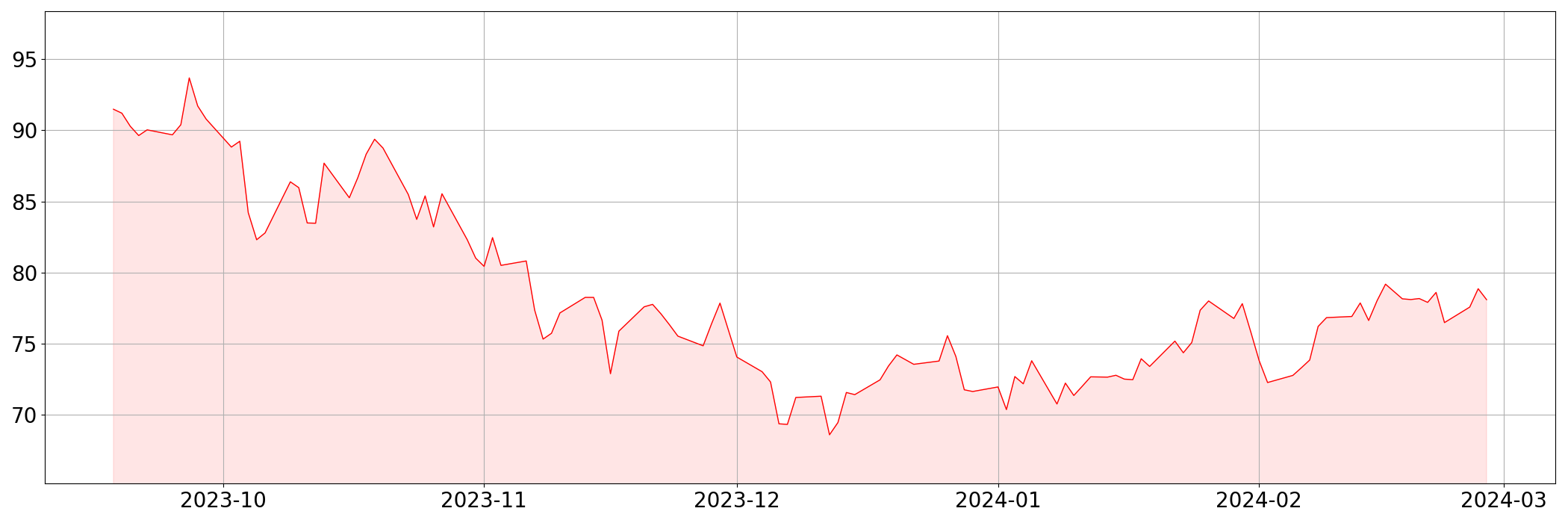 | 현재 | 78.10 | -0.77 | -0.98% |