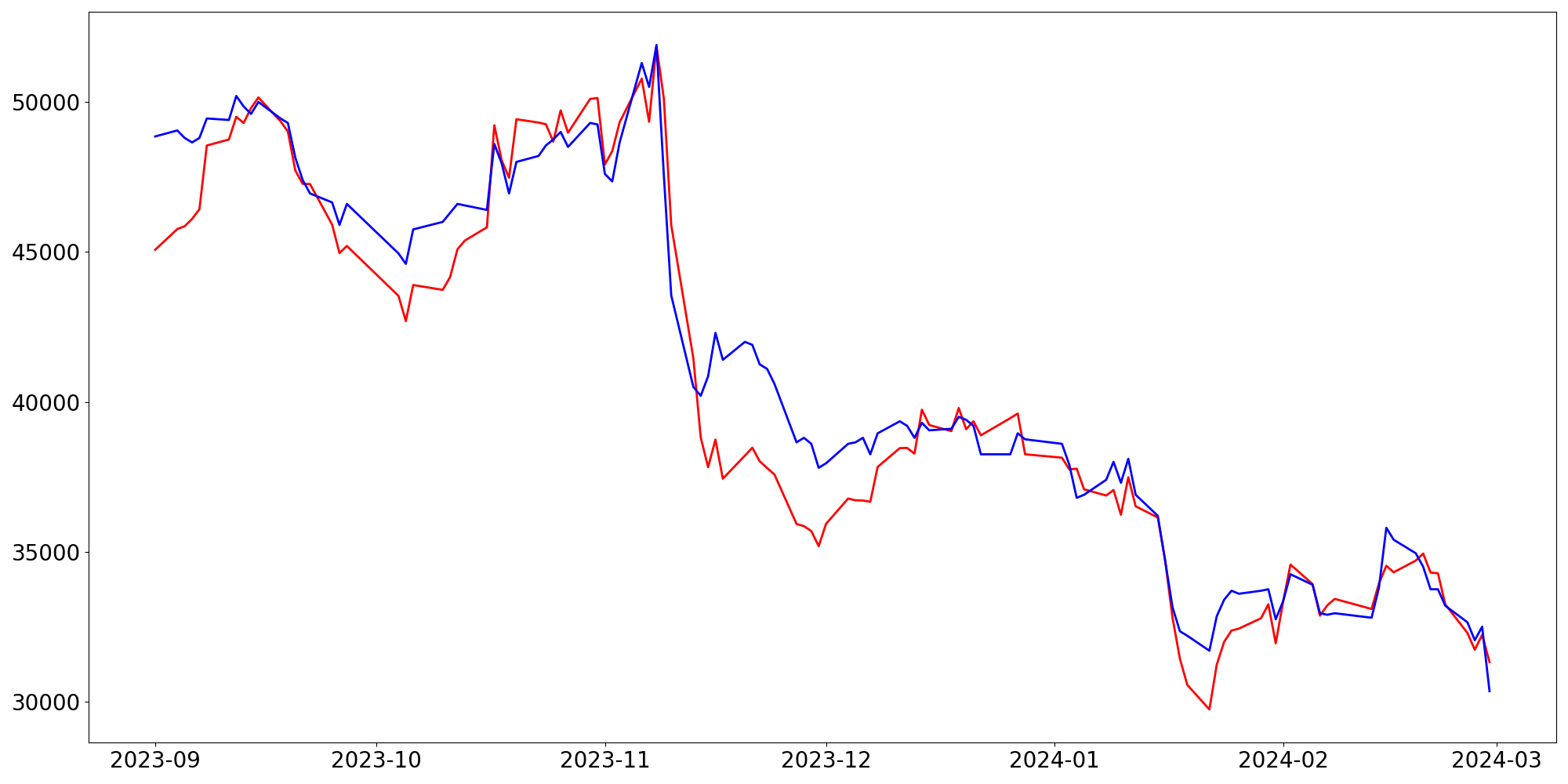 [ - : 실제값(종가) / - : 예측값(종가) ]
