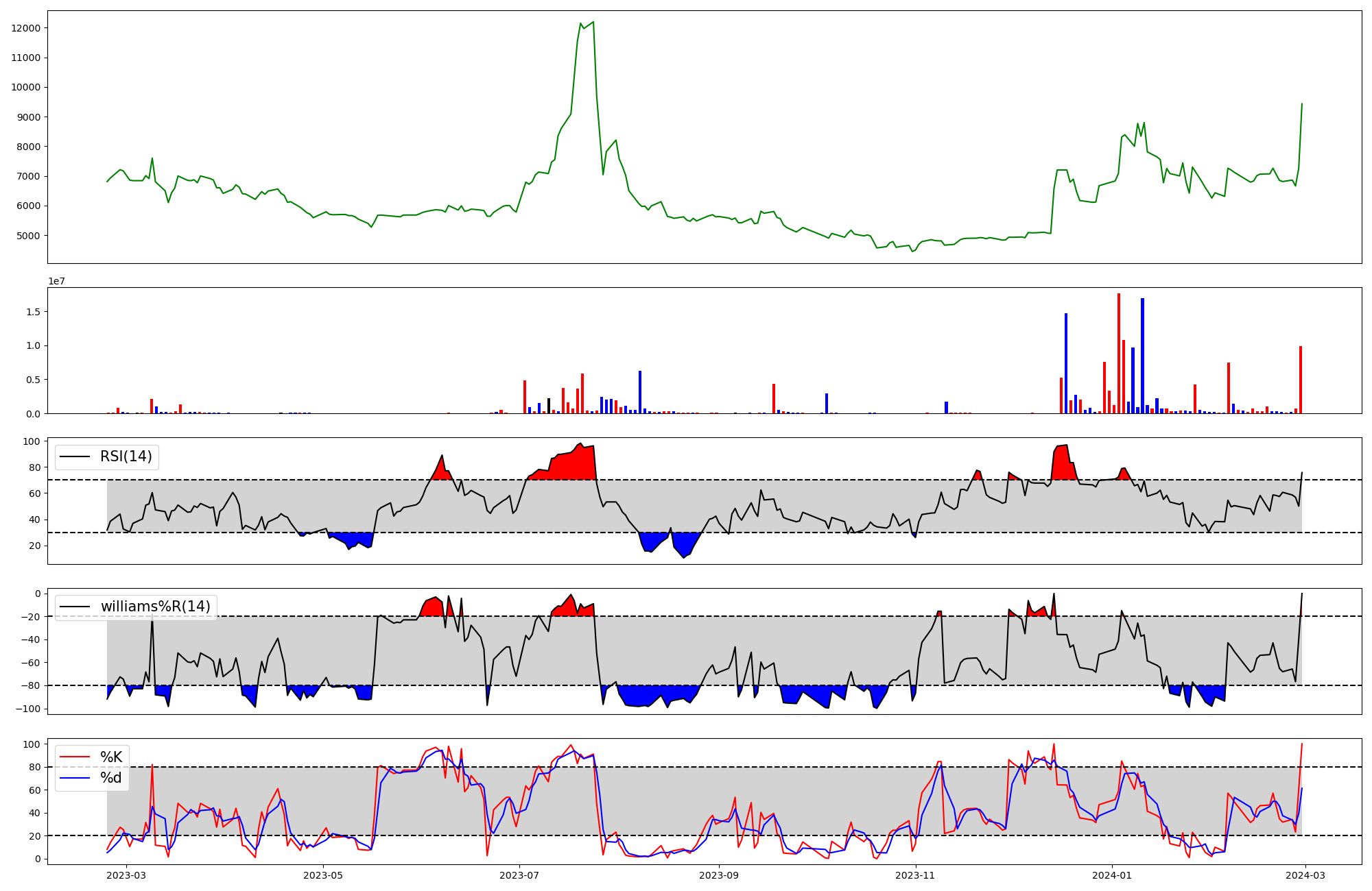 | RSI | Williams %R | stochastic(%K) | |