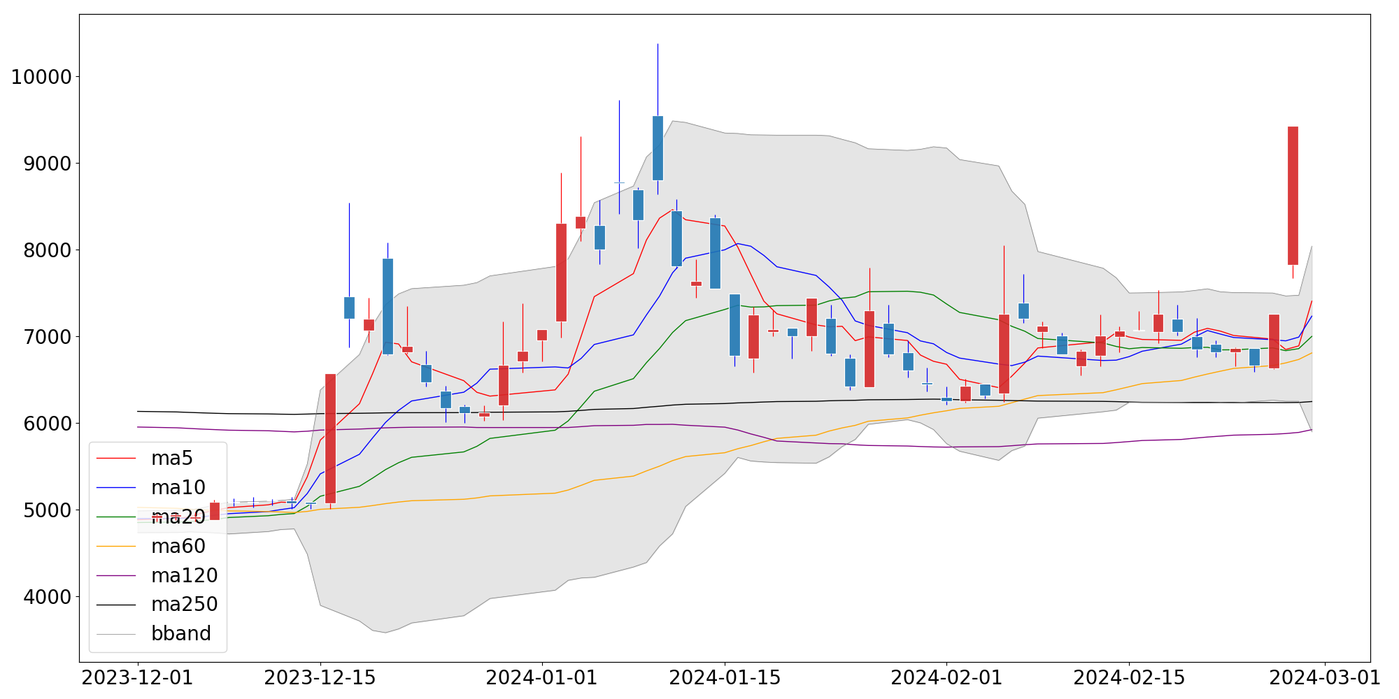 □ 오늘의 종가 : 9,430 (+2,170, +29.89%)