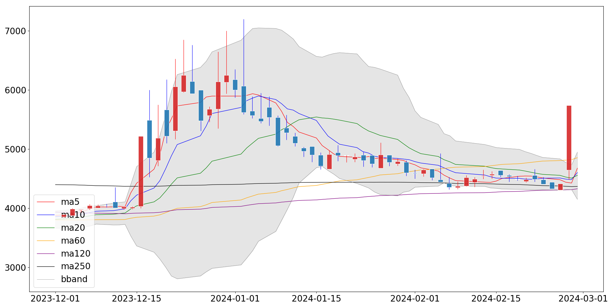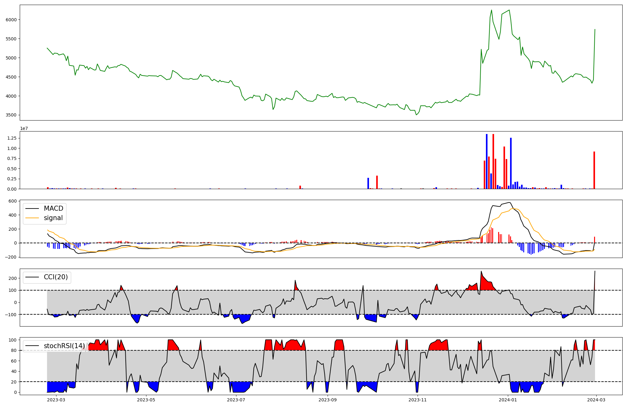 □ 오늘의 종가 : 5,740 (+1,320, +29.86%)