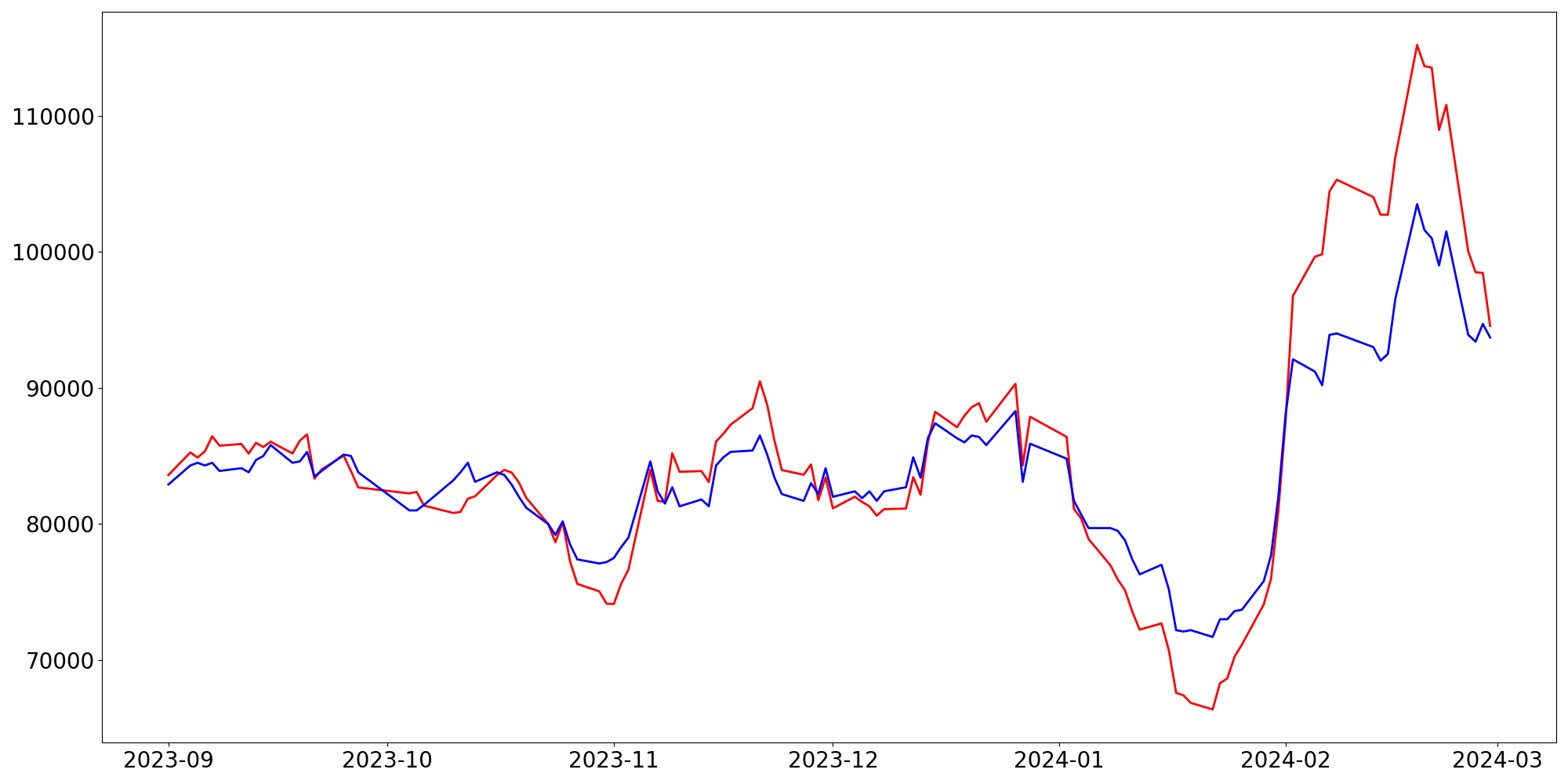 [ - : 실제값(종가) / - : 예측값(종가) ]