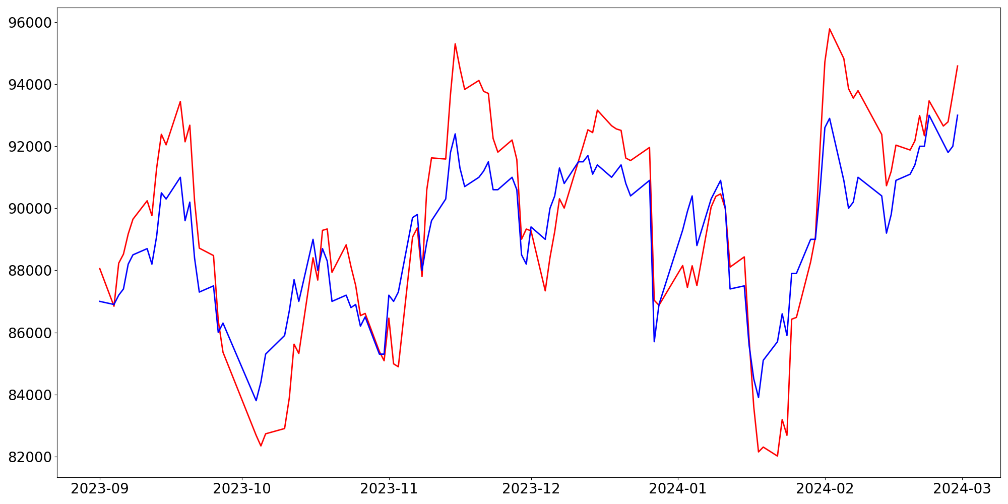 [ - : 실제값(종가) / - : 예측값(종가) ]