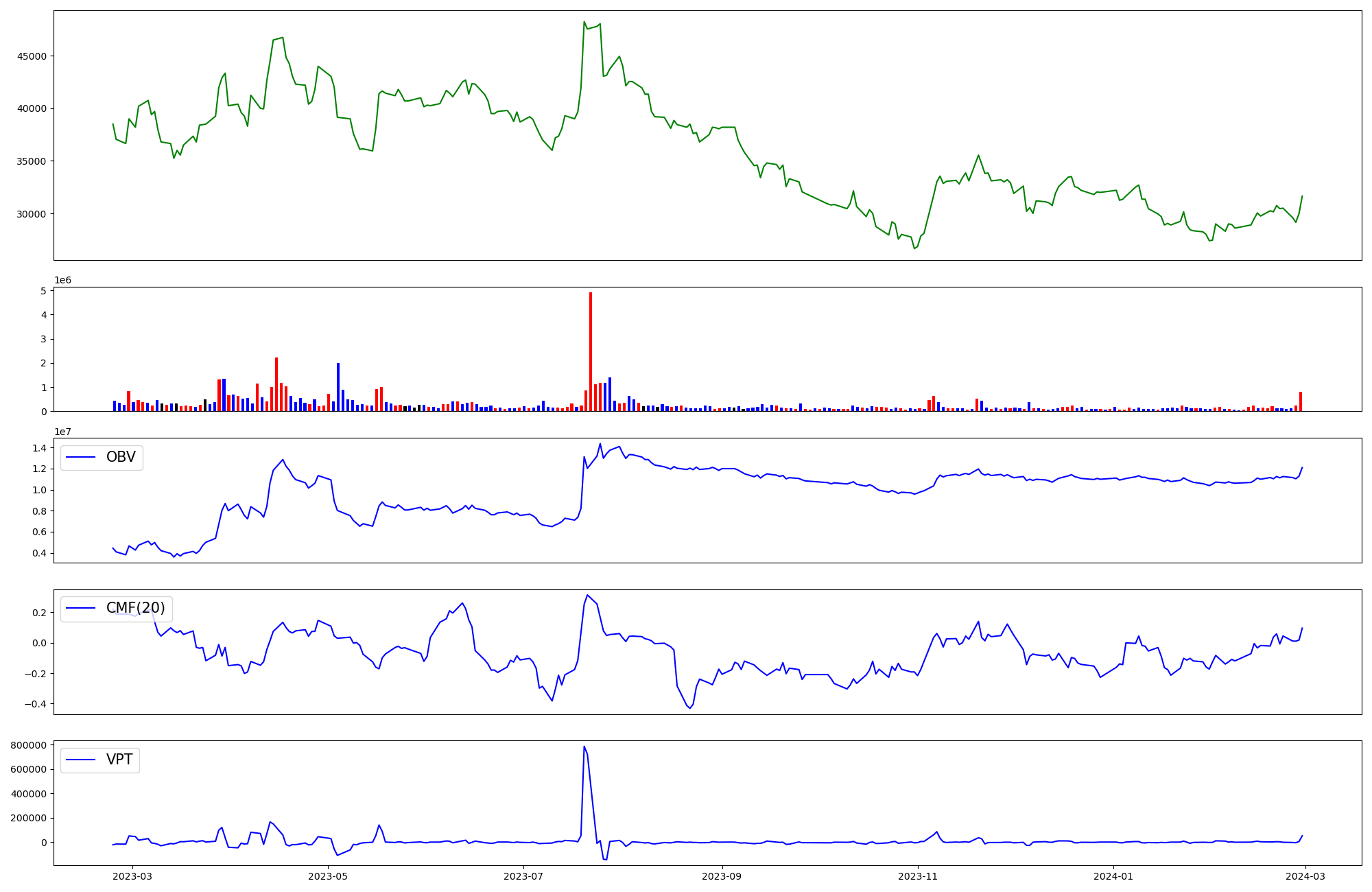 | OBV | CMF | VPT | |