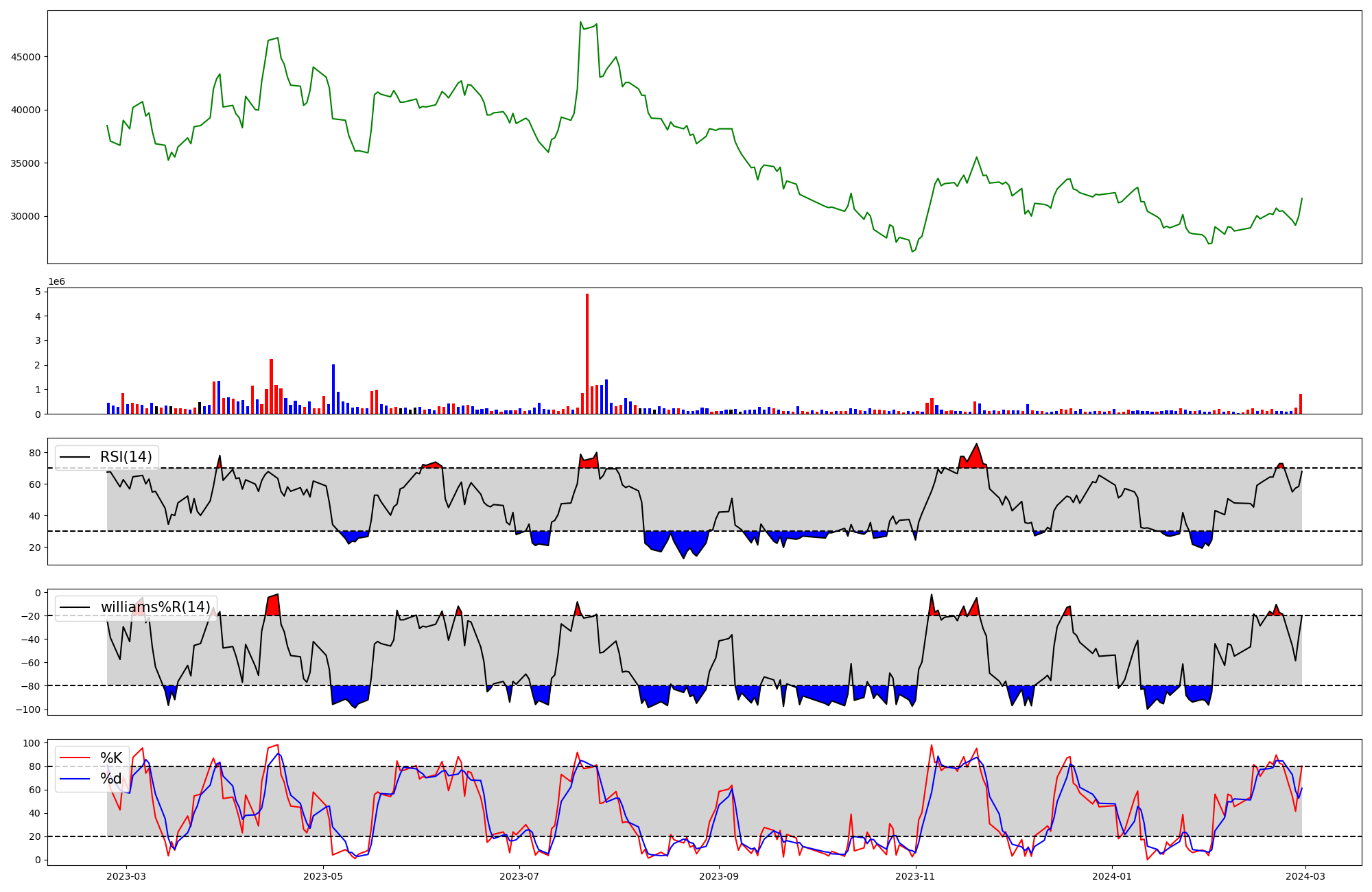 | RSI | Williams %R | stochastic(%K) | |